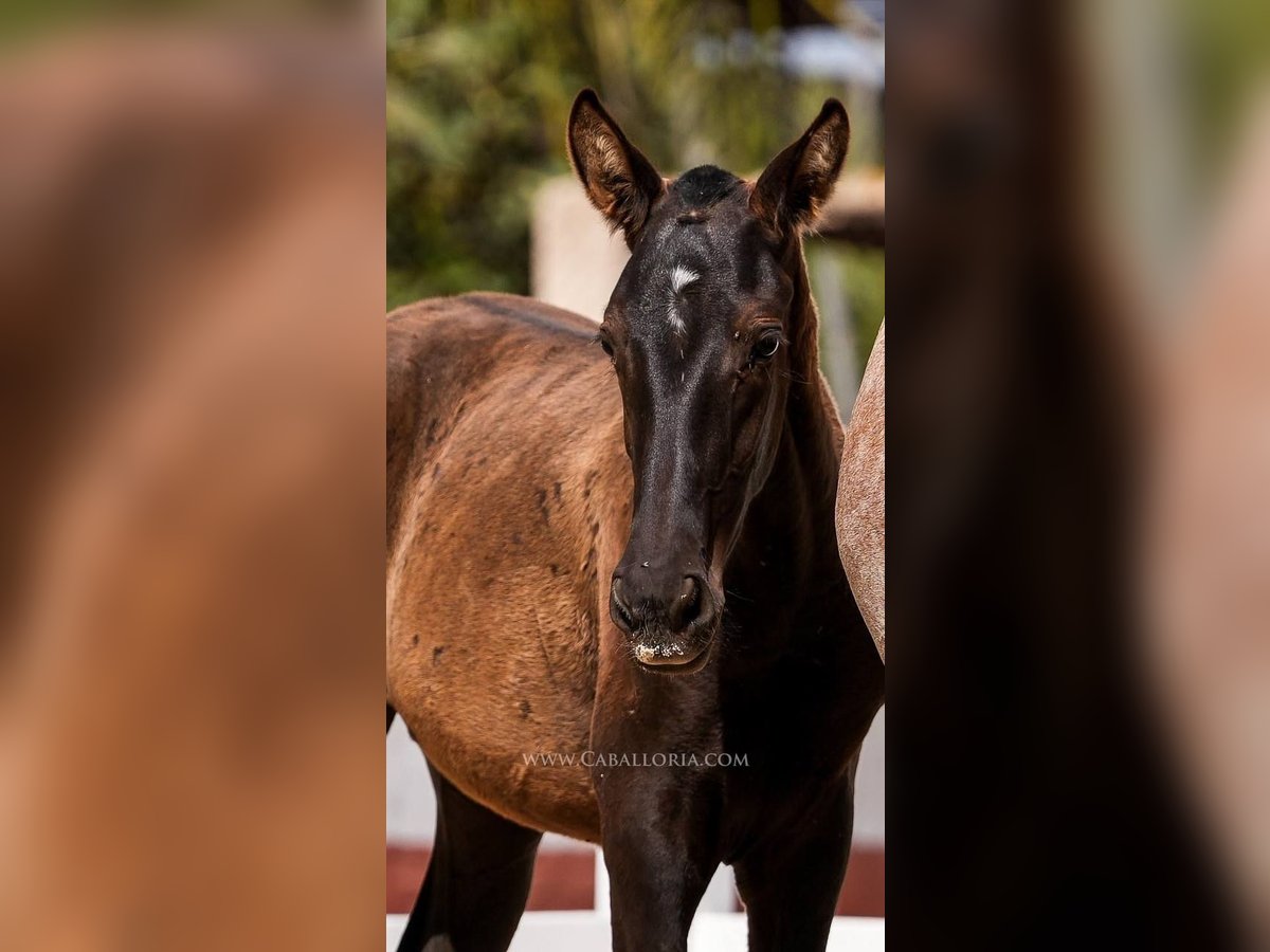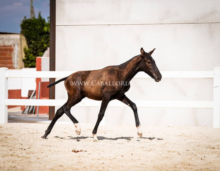 Foal: Size: The foal has already reached an impressive height of 135 cm. Genetics: Due to its pedigree, the foal carries interesting genetic traits. While his mother has one PRL gene, his father inherits two Prl genes. Appearance and gait: This PRE black foal impresses not only with an athletic physique, but also with an elegant and fluid gait, which will be an advantage in dressage and other disciplines. Face: A special feature of the foal is its fine and beautiful face, which makes it appear particularly expressive and melts every heart. Versatility: Despite its young age, the foal is already showing that it is ready for all aspects of life, be it in sport, leisure or simply as a loyal companion. In summary, this foal is not only genetically interesting, but also a promising young animal with outstanding physical and character traits. It has the potential to excel in many different areas of equestrian sports and beyond.