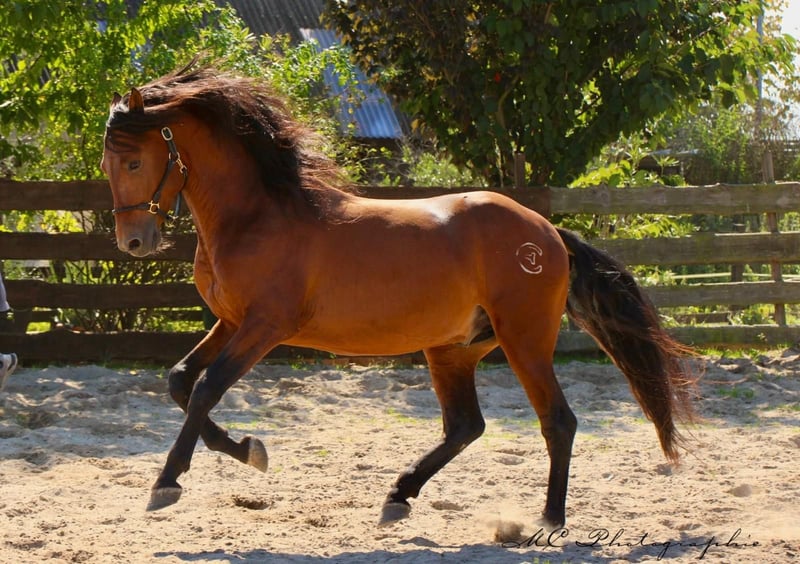 Advertisement for sale: Horse For sale is a beautiful PRE (Pura Raza Española) stallion, born in 2022. With his light brown coat and a height of 158 cm, he is a real eye-catcher. Our young stallion already shows great promise for dressage. His movements are elegant and powerful, yet always balanced and controlled. His attentive nature and willingness to learn make working with him a real pleasure. The stallion is well socialized and is always friendly and curious towards people and other horses. He is a horse with potential that can grow into a real star in the dressage arena with the right encouragement and loving care. If you are looking for a talented and charismatic companion for dressage, then this young stallion could be just right for you. Please contact us for more information or to arrange a viewing. We look forward to introducing you to our light bay treasure.