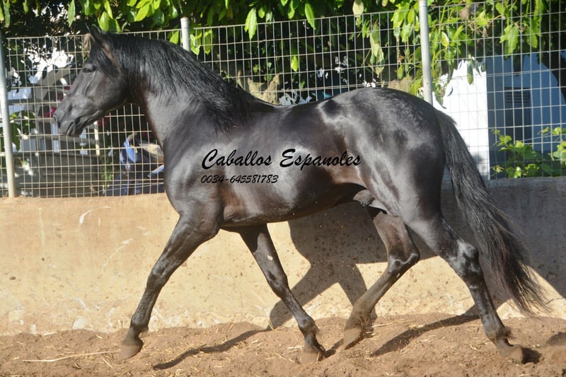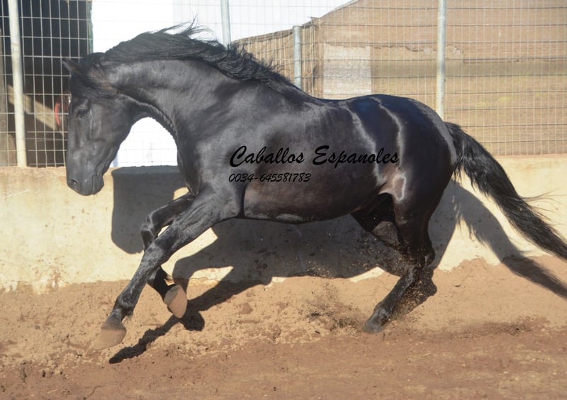 Prachtige, barokke PRE-ruin, harmonieus gebouwd met zeer goede basisgangen. Hij is voorzichtig aangezet en loopt inmiddels redelijk in de basisgangen. De jonge hengst is ook al in het terrein gereden en heeft zich daar niet onder laten indrukken. In de omgang is hij braaf en makkelijk. Tijdens het werken blijft hij altijd bij de ruiter en werkt hij graag mee. Afstamming: vader is Yeguada Militar, Aquilino Moya, Escalera. Huidige röntgenfoto's zijn beschikbaar. Het paard wordt in opdracht verkocht. Hij kan bij ons nog in training blijven. Een gezondheidskeuring (AKU) wordt op korte termijn geregeld. Internationale transportmogelijkheden.