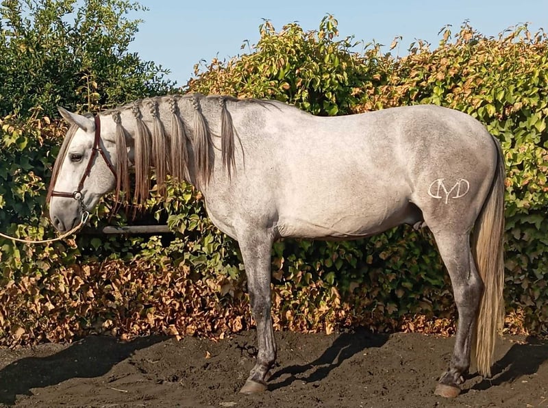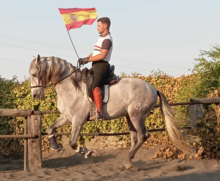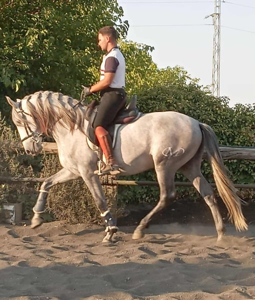 Unique opportunity for those who are looking for a friend forever We present a magnificent stallion of pure Spanish breed (PRE), born in 2021. This beautiful gray stands out for his elegance and stature, with a height of 162 cm that makes him an impressive specimen. His training in classical dressage makes him ideal for competitions as well as for enjoying rides and training in the field. His noble character and great willingness to work make him a perfect companion for riders of all levels. He is the son of Romero de Trujillo, the most important PRE stallion of recent times. The horse has a character that is difficult to match. A unique horse for those seeking a friend forever. Don't miss the opportunity to acquire this exceptional horse at a good price. Transport can be easily organised. visit our facebook page https://www.facebook.com/sierraonuba