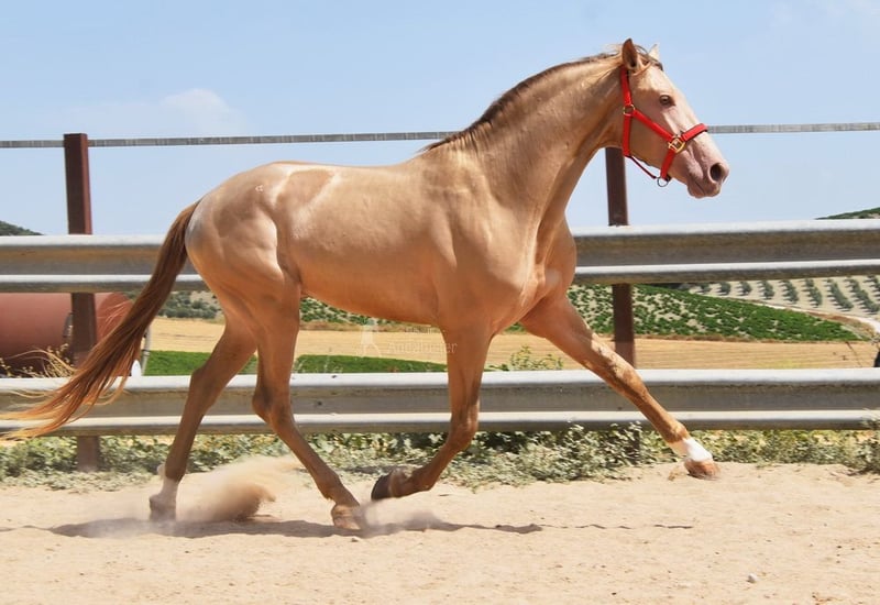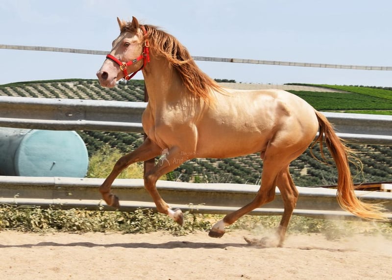 lieber ruhiger Charakter, neugierig, verspielt, verschmust, in den Grundgangarten geritten, Gelände, groß, barock, bequem, gekört, Deckhengst, spezielle Farbe, Baya Perla (CrPrl) mit PRE Papieren, gute Röntgen und Piro negativ, Abstammung: Antonio Guiral Guarga, Castillo Villafranca, Paco Marti www.elegante-andalusier.com