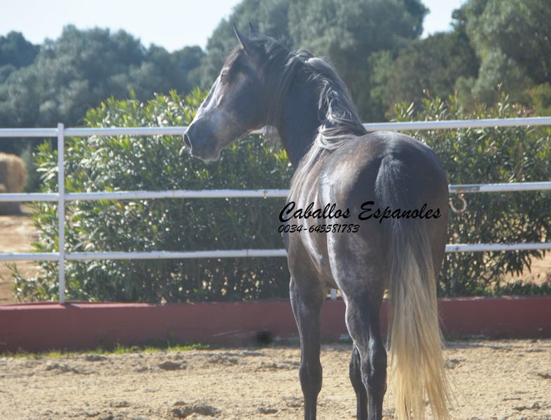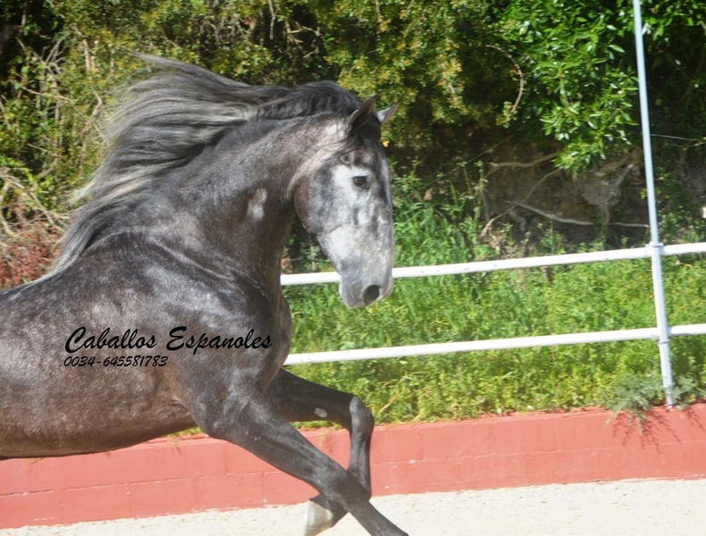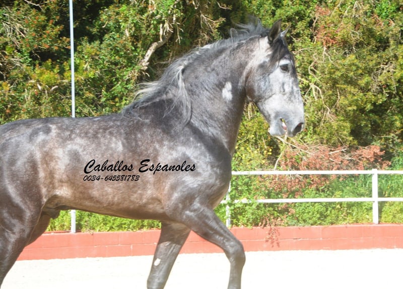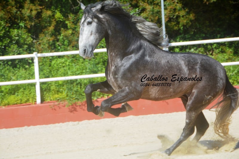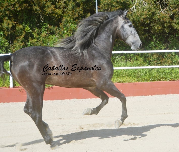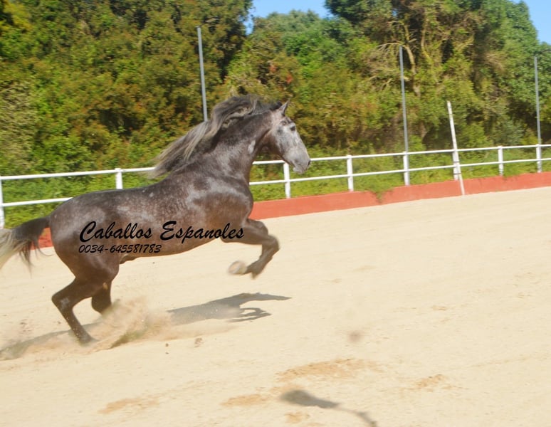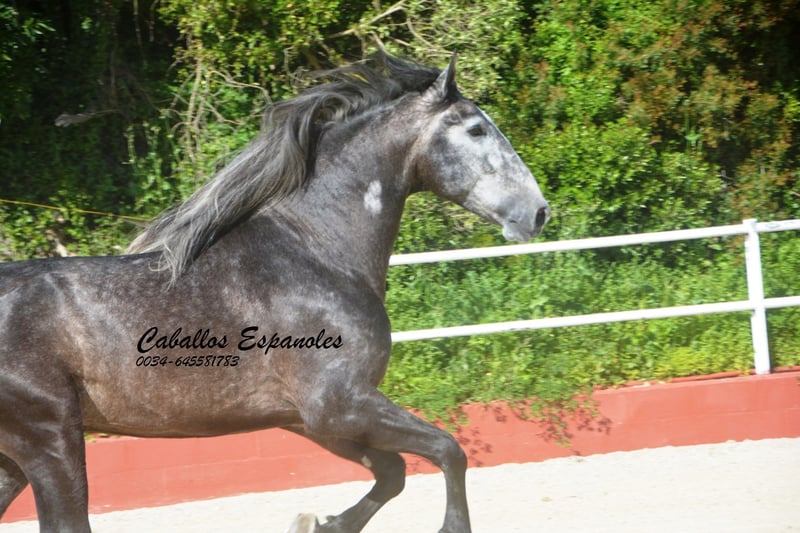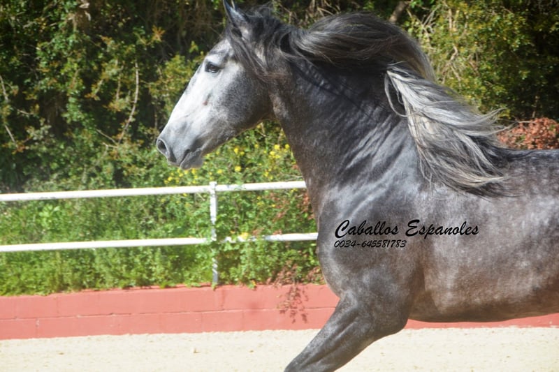 Dieser großrahmige, elegant aufgemachte PRE Hengst ist wirklich ein HIngucker. Der hübsche Hengst ist mit drei guten Grundgangarten ausgestattet. Beim Freilauf ist er immer wieder brav abrufbar. Er stand bis vor einem halben Jahr mit seinen Freunden auf dem campo. Er wird gerade an den Sattel gewöhnt und so langsam auf sein Leben als Reitpferd gewöhnt. Abstammung: Vater ist der Yeguada Militar Hengst Centro, dessen Vater der Mejorante Hengst Lego ist. Der wiederum auf Lebrjano und Agente zurückgeht. Seine Mutter hat Marín García, Escalera und Bohorquez in sich vereint. Das Pferd wird im Auftrag verkauft. Er kann gerne bei uns noch in Beritt bleiben. Eine AKU wird kurzfristig organisiert. Internationaler Transport.
