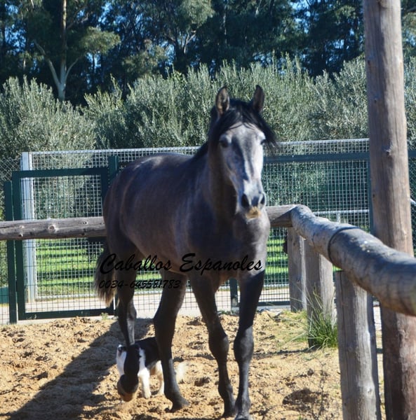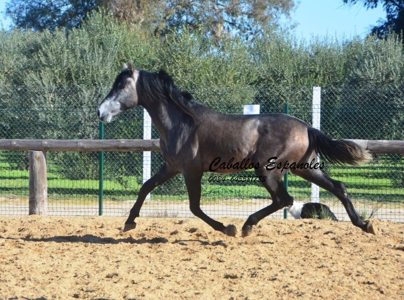 Dieser tolle, qualitätsvolle auf Dressur gezogen PRE Hengst gefällt durch seine Ausstrahlung und seine überragenden Bewegung. Dieser junge Hengst wird bei entsprechender Förderung in der Dressur sehr viel Freude bereiten. Im Umgang ist er superbrav und genießt die Streicheleinheiten. Er ist longiert und wird nun langsam an sein Leben als Reitpferd vorbereitet. Ein tolles Pferd zum Selbstausbilden, mit allerbester Zuchtlinie Seine Abstammung ist vom Feinsten. Ihr Vater ist der große Rappe Nelson (Yeguada Militar), sein Vater Gerente geht auf Remache zurück. Ihre Mutter vereint Candau Blut, Escalaera und den bewegungsstarke Vinatero III Das Pferd wird im Auftrag verkauft. Er kann gerne bei uns noch in Beritt bleiben. Eine AKU wird kurzfristig organisiert. Internationaler Transport.
