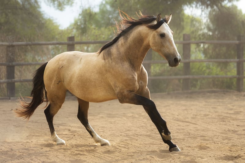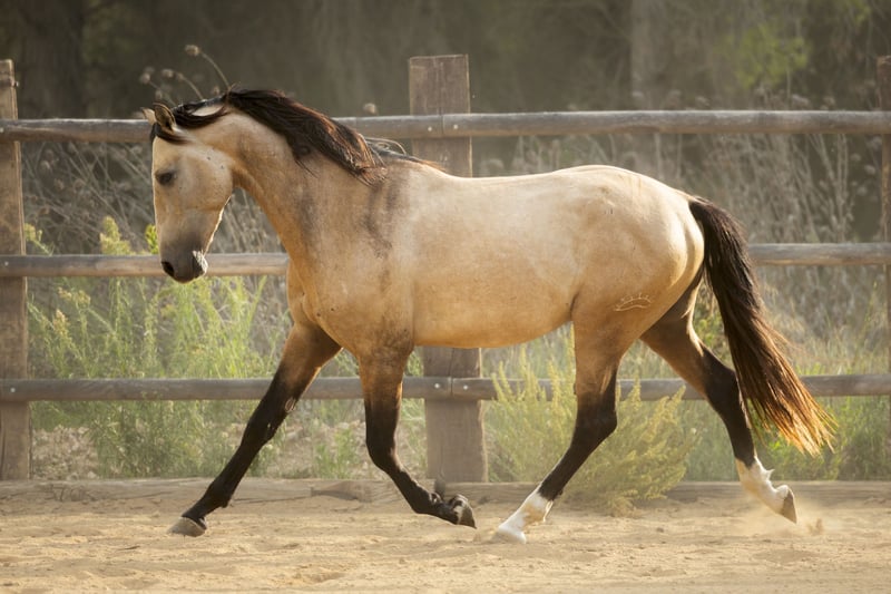 Dieser traumhaft schöne PRE Hengst ist 3 Jahre alt und hat tolle Bewegungen. Er ist Buckskin mit einer weißen Blässe und zwei weißen Stiefelchen. Er hat einen neugierigen, mutigen Charakter und eine tolle Abstammung, welche auch für die Zucht interessant ist. Das Anreiten kann hier gerne vor Ort übernommen werden. Wir betreuen die Pferde hier vor Ort und stehen immer mit Ihnen in Kontakt. Melden Sie sich gerne unter +49 171 528 48 65! Wir haben auch viele andere Pferde, welches “ihr” zu Hause suchen!