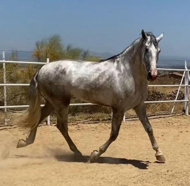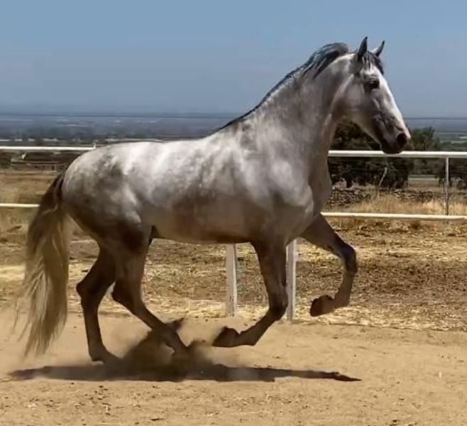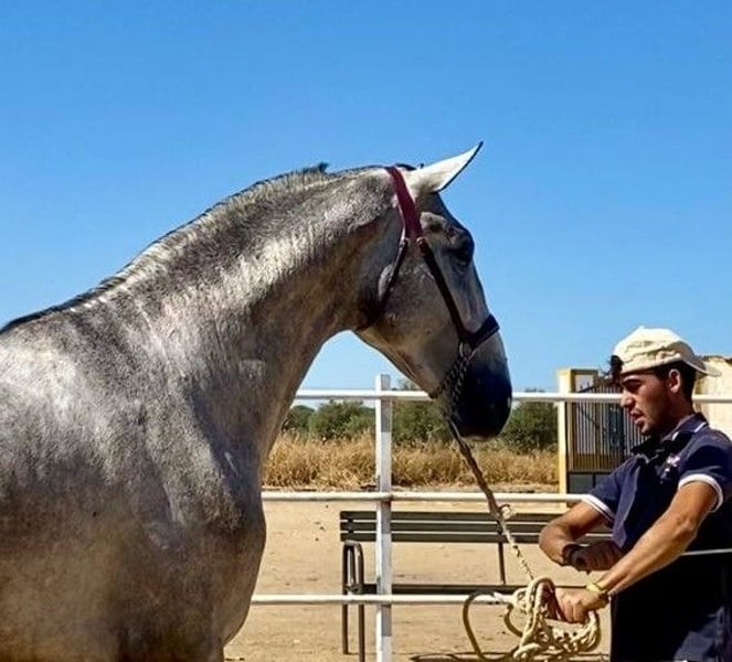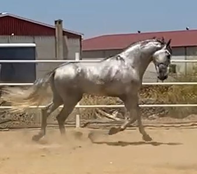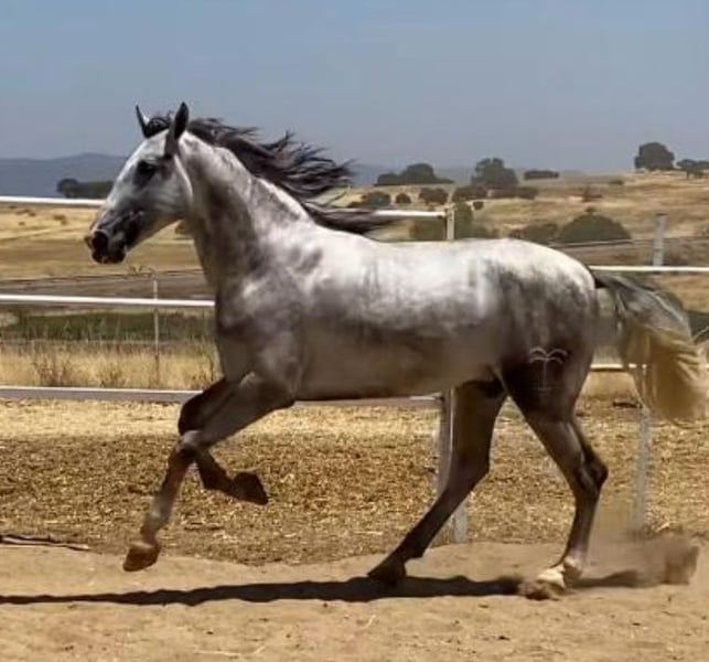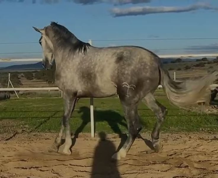 ZUM VERKAUF STEHT EIN GRAUER HENGST, DER FÜR MORPHOFUNKTIONALE TURNIERE VORBEREITET IST, PRE. Er hat eine sehr gute Morphologie und spektakuläre Bewegungen, ist 1,75 m groß und 3 Jahre alt, mit viel Noblesse und Schönheit, und hat viel Rasse. Es handelt sich um ein komplettes Pferd, das eingeritten und bereit ist, an morphologischen PRE-Turnieren der ANCCE teilzunehmen. ZUKÜNFTIGER DECKHENGST aufgrund seiner großen Schönheit, Noblesse, Knochenstruktur und Rasse, aus den besten genetischen Linien des PRE. In seinem Stammbaum sehen wir spanische Champions und Pferde der Rasse. Er befindet sich in der Grundausbildung. Wenn Sie ein Pferd reiner spanischer Rasse kaufen möchten, das für alles geeignet ist – Turniere, Reiten, Deckhengst für Besamungen – dann ist dies Ihr Pferd. Rufen Sie jetzt an, bevor es verkauft wird.