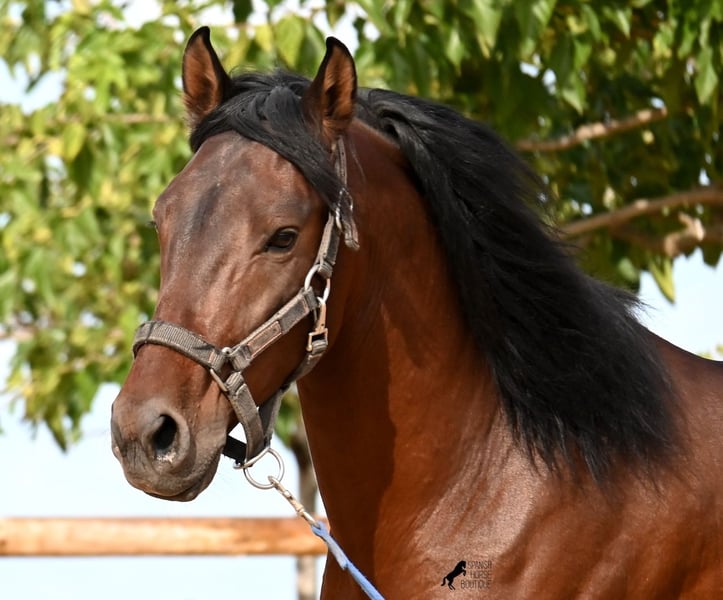 Deze hengst, geboren in 2020, is een pure PRE (Andalusische paard, met rasbewijs van de ANCCE) en een echt krachtpakket dat barst van de energie tijdens het werk! Hij komt van een liefdevolle fokker, waar laatrijpe paarden zoals de Spanjaarden krijgen wat ze echt nodig hebben: tijd! Zo heeft hij tot zijn derde jaar volledig onbeleerd in de hengstenkudde gestaan, is daarna kort opgestald om de basis te leren en vervolgens weer op vakantie gegaan om alles de tijd te geven te verwerken. Momenteel heeft hij een goede basis onder het zadel, waarbij vooral wordt gelet op een goede differentiatie tussen zijn drang naar vooruit en rustmomenten onder het ruiterzadel. Hij leert steeds beter zichzelf te dragen, zich te strekken en rustperiodes te verlengen, wat mooi om te zien is. Een paard dat niet gehaast in de opleiding is, maar eerst zichzelf mag vinden en leert zijn energie te kanaliseren. En hij heeft een enorme arbeidsethos! Waar anderen snel de puf verliezen, geeft hij meer en is onvermoeibaar, waardoor hij zeker een ideaal paard is voor zeer ambitieuze ruiters die graag regelmatig en doelgericht trainen. Hij wordt gereden met een dubbelgebroken watertrens en is alleen aan de voorbenen beslagen. 's Nachts leeft hij op een hengstenpaddock, wat goed is voor zijn hoofd, en overdag staat hij in de box voor zorgvuldige verzorging en juiste voeding. Uitritten op het hectare grote terrein doen hem goed en je merkt echt dat hij zijn balans vindt, als een positieve afwisseling op het rijbaan. Op lichte werkdagen gaat hij in de longeerbak en wordt hij zo verder gemuscleerd, zonder gewicht te dragen. In zijn afstamming vinden we uitzonderlijke hengsten zoals YACO de TORRELUNA, ERMITAÑO III, en zijn broer is zeer succesvol in de dressuur en heeft zelfs deelgenomen aan de SICAB (wereldkampioenschap voor PRE). Hij is nog niet gedekt en is gewend in de buurt van merries te zijn, waarbij de optie van castratie ter plaatse uiteraard aanwezig is. Hij meet momenteel 157 cm en heeft een mooi barokke uitstraling, met een fijn Spaans hoofd en goede bewegingen, waardoor hij voor veel disciplines met een hoog werkniveau interessant is. Prijsindicatie E-F! Zijn locatie is Menorca. Video's en afstamming op aanvraag. Graag organiseer ik ter plaatse een keuring, beredenheid, castratie, transport of ook uw reis, mocht u persoonlijk komen kijken. Details hierover zijn te vinden op mijn website of in een gesprek. Saludos uit Spanje