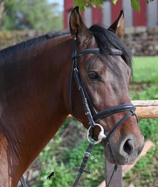 Dieser 2020 geborene, reinrassige PRE Hengst (Andalusier mit Rassenachweis der ANCCE), ist ein richtiges Powerpaket der nur so vor Elan bei der Arbeit strotzt! Er kommt von einem liebevollen Züchter, wo Spätentwickler wie die Spanier, das bekommen, was sie wirklich brauchen- Zeit! So ist er bis 3 in der Hengstherde komplett roh gestanden, wurde dann kurzzeitig aufgestallt, um die Basics zu lernen und dann wieder in den Urlaub entlassen, um alles mit Zeit zu verarbeiten. So hat er aktuell eine gute Basis unter dem Sattel, wo besonders darauf geachtet wird, dass er gut zu differenzieren lernt, zwischen seinem Vorwärtsdrang und Ruhephasen unter dem Reiter. Er lernt immer besser, sich selbst zu tragen, sich zu strecken und Ruhephasen zu verlängern, was sehr schön zu sehen ist. Ein Pferd, dass nicht in der Ausbildung gehetzt wurde, sondern sich erst finden darf und lernt die Energie zu lenken. Und Arbeitswillen hat er ohne Ende! Wo anderen schnell die Puste ausgeht, gibt er mehr und ist unermüdlich, womit er bestimmt ein Ideales Pferd für sehr ambitionierte Reiter ist, die gerne regelmäßig und gezielt trainieren. Geritten wird er auf doppelt gebrochener Wassertrense und ist nur an den Vorderhufen beschlagen. Nachts lebt er auf einem Hengstpaddock, was seinem Kopf auch sehr gut tut und tagsüber ist er in der Box für fürsorgliche Pflege und die korrekte Fütterung ist so besser garantiert. Ausritte auf dem hektargroßen Areal tun ihm auch gut und man merkt richtig, wie er da in seine Mitte findet, als positive Abwechslung zum Viereck. An leichten Arbeitstagen geht er in die Führmaschine und wird auch so weiter bemuskelt, ohne Gewicht zu tragen. In seiner Abstammung finden wir Ausnahmehengste wie YACO de TORRELUNA, ERMITAÑO III und sein Bruder ist sehr erfolgreich in der Dressur und hat es sogar zum SICAB (Weltmeisterschaft der PRE) geschafft. Er hat noch nicht gedeckt und kennt es, in der Nähe von Stuten zu sein, wobei die Option der Kastration vor Ort, selbstverständlich besteht. Aktuell misst er 157cm und hat ein schön barockes Exterieur, mit einem feinen Spanierkopf und guten Bewegungen, die ihn für viele Sparten mit hohem Arbeitsniveau interessant machen. Preiskategorie E-F! Sein Standort ist Menorca. Videos und Abstammung gerne auf Anfrage. Gerne organisiere ich vor Ort eine AKU, Beritt, Kastration, Transport oder auch ihre Reise, sollten Sie persönlich zum Anschauen kommen. Details dazu gerne auf meiner Seite oder im Gespräch. Saludos aus Spanien