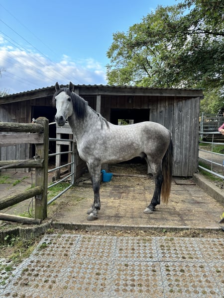 Sonderpreis für kurzentschlossene Verkaufe PRE Hengst – Schimmel, geb. 2020 Zum Verkauf steht ein eleganter PRE Hengst, mit aktuellem Stockmaß von 160 cm, Gardel V ist er ein echter Blickfang. und bestens für die Freizeit, Dressur, WE geeignet und überzeugt durch sein angenehmes Temperament sowie seine vielseitigen Einsatzmöglichkeiten. Er steht am Anfang seiner Ausbildung, freundlich im Umgang und zeigt viel Potenzial nicht nur für den Freizeiteinsatz. Ob für ausgedehnte Ausritte, Spaziergänge oder entspannte Stunden im Gelände – dieser PRE Hengst ist der ideale Begleiter. Ausritte alleine und auch mit Hengsten / Stuten kein Problem. Er ist ein typvoller spanischer Hengst. Er wird fein ausgebildet und ist entsprechend fein an den Hilfen. Er hat viel Potenzial was gefördert und gefordert werden sollte. Er wurde im letzten Jahr aus Andalusien importiert. Barhuf und Ekzemfrei. AKU aus dem letzten Jahr vorhanden. Bei Interesse oder für weitere Informationen stehe ich gerne zur Verfügung. Besichtigung und Probereiten nach Vereinbarung möglich. Auf dem letzten Bild der Vater. LINK zum Stammbaum: https://www.lgancce.com/lgpreancce/asp-publico/arbolGenealogicoPRE/ConsultarArbolGenealogicoPRE.aspx?ID=u/4canhsaAY=