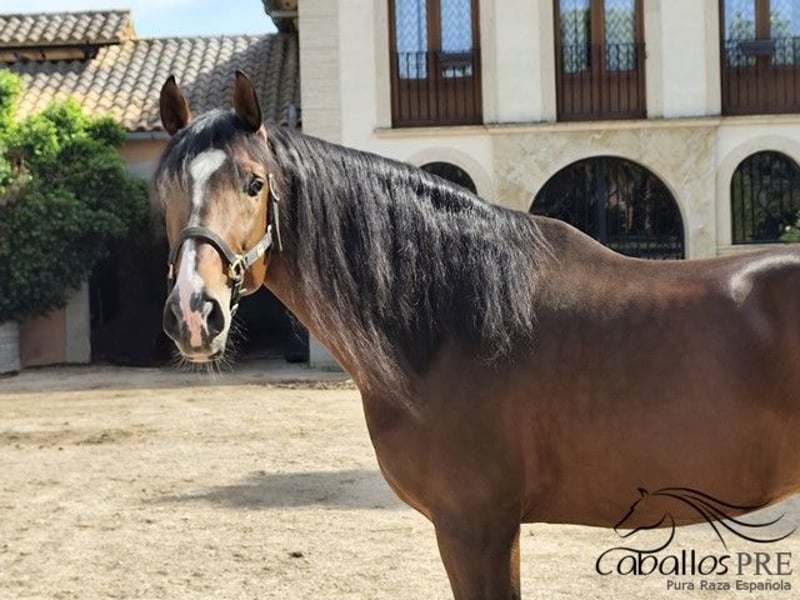 Sexo: Semental Nacido: 2020 Raza: P.R.E Color: Castaño Tamaño: aprox. 1.65 m Padre: Juglar XXVI Madre: a consultar Nivel de entrenamiento: actualmente en proceso de montura Precio: 15.000 € Ubicación: España, Mallorca Zafiro es un semental P.R.E. super elegante con un carácter claro y mucho encanto. Nació en la criadora y creció en manada. Ha tenido mucho tiempo para su desarrollo y actualmente está siendo montado por primera vez. Si se desea, por supuesto, se le puede castrar, pero durante nuestro encuentro no mostró ningún comportamiento de semental. Ahora, al ser montado, es muy fácil de manejar y se comporta muy bien. Zafiro tiene una excelente ascendencia a través de Juglar XXVI y unos movimientos muy buenos. En cuanto a su carácter, no deja nada que desear, es muy sociable y disfruta de cada momento de cariño.