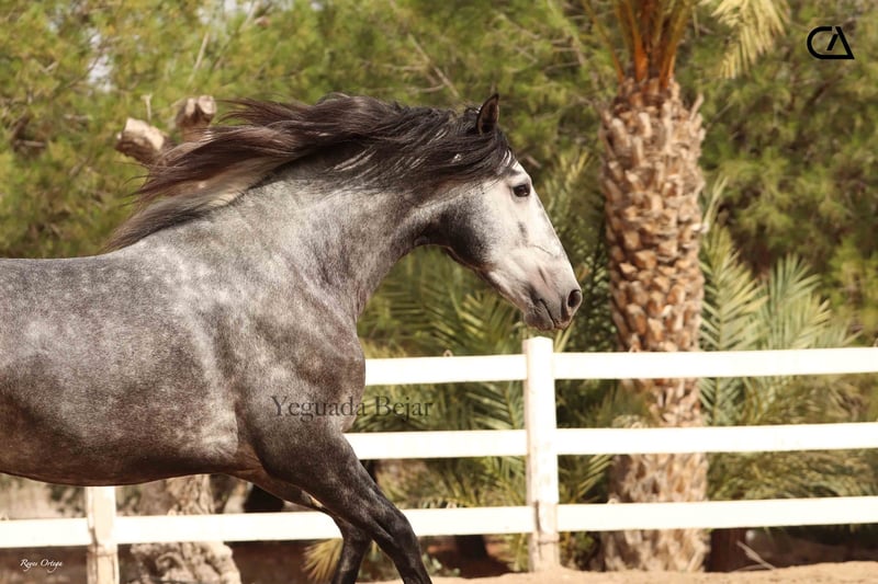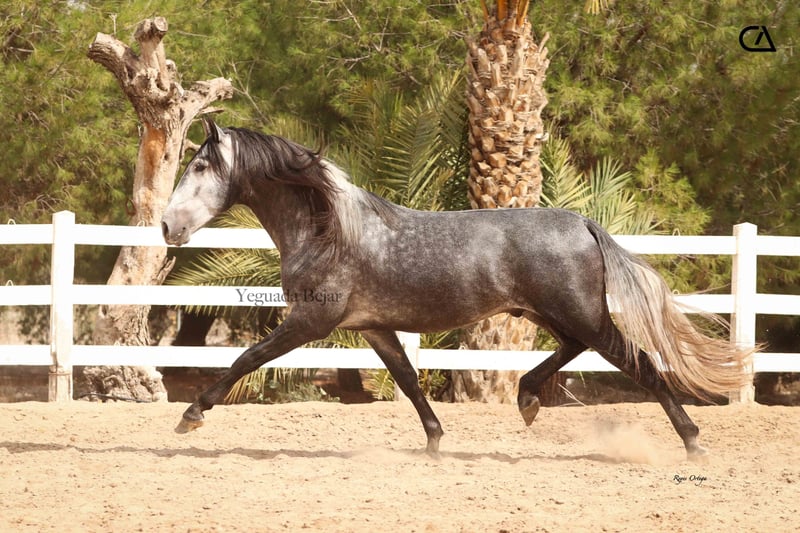 Zahonero CA (Vagabundo XII und Óptima CA) ist ein junges Hengstfohlen, geboren 2021. Barock, mit Schönheit und sehr gutem Charakter, ist er ein schönes Projekt für die Zukunft. Sein Vater ist Vagabundo XII, Sohn von Digital, Züchter der Rasse, alle von Los Retamales. Seine Mutter ist Optima CA, Tochter von Fer Davinci, einem Hengst mit großem Erfolg und gezüchtet von Yeguada Ferrero (von Fer Tempranillo).