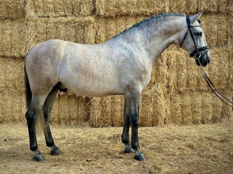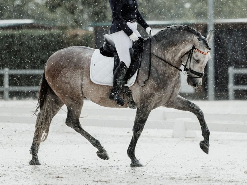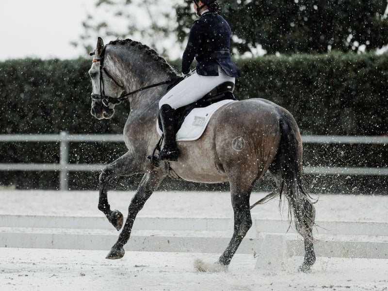 Wir präsentieren ein prächtiges Exemplar des Pura Raza Española (PRE), geboren im Jahr 2020 mit einem Stockmaß von 166 cm, das Eigenschaften vereint, die sowohl im Sport als auch in der selektiven Zucht hoch geschätzt werden. Es handelt sich um einen jungen Hengst, der noch nicht gedeckt hat und somit großes Potenzial für Züchter bietet, die ein Pferd mit Perspektive, Talent und hochwertiger Genetik in ihre Zucht aufnehmen möchten. Der Hengst ist derzeit auf Dressurlevel 4 ausgebildet, was bedeutet, dass er versammelt und präzise Übungen souverän beherrscht, die Kraft, Gleichgewicht und hohe Konzentrationsfähigkeit erfordern. Seine gute Arbeitsbereitschaft und die Leichtigkeit, mit der er neue Anforderungen aufnimmt, machen ihn zu einem sehr angenehmen Reitpferd, auch in anspruchsvolleren Umgebungen wie dem Turnierplatz. Tatsächlich verfügt er bereits über Turniererfahrung, was seine Reife, Sicherheit und Zuverlässigkeit unter Druck zusätzlich unterstreicht. Dabei zeigt er stets Adel und Kooperationsbereitschaft gegenüber seinem Reiter. Seine physischen Qualitäten zeichnen sich durch ausdrucksstarke, elastische und harmonische Bewegungen aus, mit einem elastischen Trab und einem bergauf gesprungenen Galopp – Eigenschaften, die in der klassischen Dressur sehr geschätzt werden. Darüber hinaus ist dieses Pferd piroplasmosefrei, was ihm Reisen ohne Einschränkungen zu jedem internationalen Ziel ermöglicht. Als zusätzlicher Vorteil stehen Röntgenbilder zur Verfügung, die für mehr Sicherheit und Transparenz sorgen – ideal für alle, die ein Pferd mit vollen Garantien suchen.