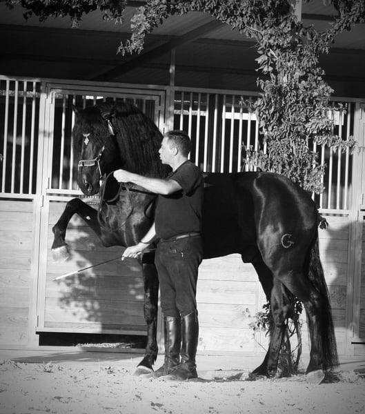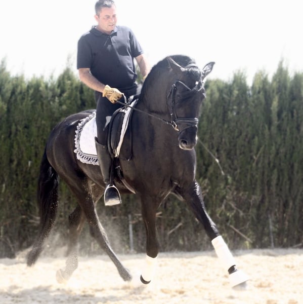 An outstanding dream stallion (can be gelded upon request) with perfect conformation and a wonderful temperament! Absolutely reliable under saddle, highly talented in haute école! Beginning piaffe, extended walk, and fantastic collection movements! No stallion habits! A dream for lovers of the baroque type! Röbis is perfect!