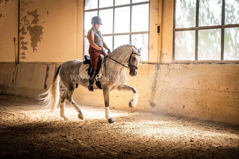 Name: Abaquio Geboren am: 12.04.2020 Stockmaß: 1,67 m Ausbildungsstand: Niveau 2 ANCCE Klassifizierung: Reproductor básico ( Gekört ) Abaquio ist ein absolut lieber und unkomplizierter PRE Hengst mit einer Größe von 1,67 m. Sein gelassener Charakter macht ihn sowohl für den ambitionierten Dressurreiter als auch für den Freizeitreiter interessant. Ob im täglichen Training oder im Umgang, Abaquio zeigt sich immer freundlich und kooperativ. Durch seine solide Ausbildung auf Niveau 2 bietet er eine gute Grundlage für weitere Fortschritte in der Dressur oder als entspannter Begleiter im Freizeitbereich. Infos auf Anfrage! *Alle visuellen Inhalte, einschließlich Fotos und Videos, die von Caballoria S.L. präsentiert werden, sind durch das Urheberrecht geschützt. Dies bedeutet, dass die Vervielfältigung, Verbreitung, Ausstellung oder jegliche Nutzung dieser Materialien ohne die ausdrückliche und schriftliche Zustimmung von Caballoria S.L. streng verboten ist. Das Urheberrecht stellt sicher, dass die Urheber die Kontrolle über ihre Werke behalten und für deren Nutzung angemessen anerkannt und entschädigt werden.