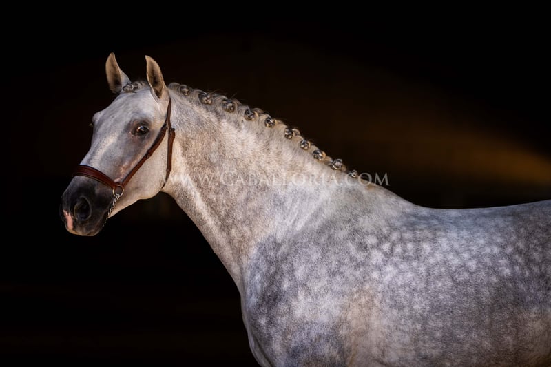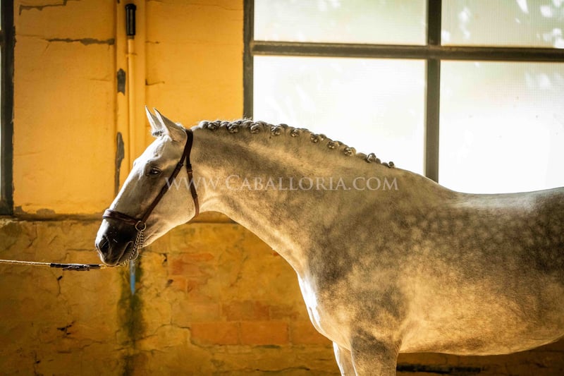 Name: Abaquio Born on: 12.04.2020 Stock size: 1,67 m Training level: Level 2 ANCCE classification: Reproductor básico ( licensed ) Abaquio is an absolutely lovely and uncomplicated PRE stallion with a height of 1.67 m. His relaxed character makes him interesting for the ambitious dressage rider as well as for the leisure rider. Whether in daily training or in handling, Abaquio is always friendly and cooperative. Thanks to his solid training at level 2, he offers a good basis for further progress in dressage or as a relaxed companion for leisure riding. Information on request! *All visual content, including photos and videos, presented by Caballoria S.L. are protected by copyright. This means that the reproduction, distribution, exhibition or any use of these materials without the express and written consent of Caballoria S.L. is strictly prohibited. Copyright law ensures that authors retain control over their works and are appropriately recognized and compensated for their use.