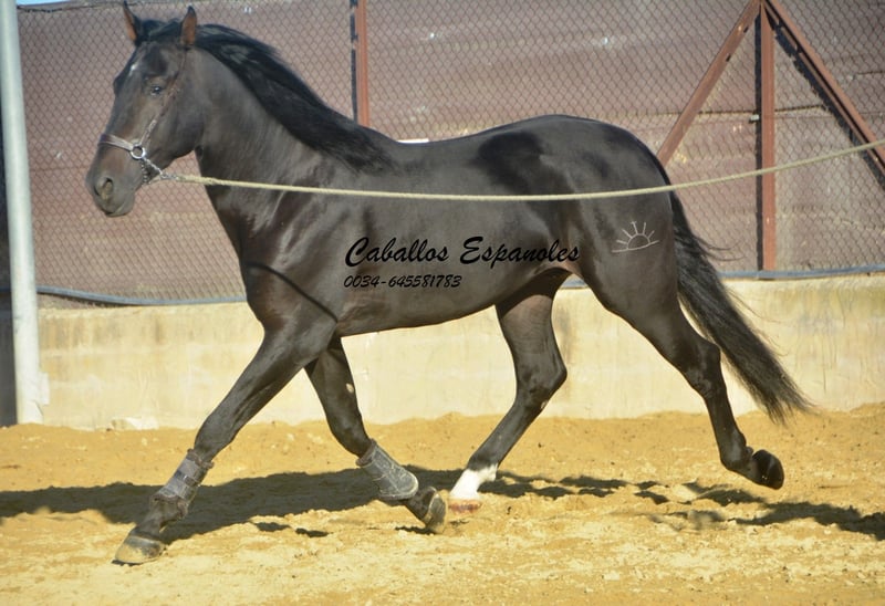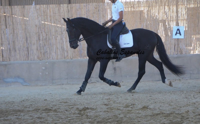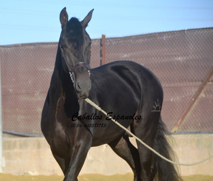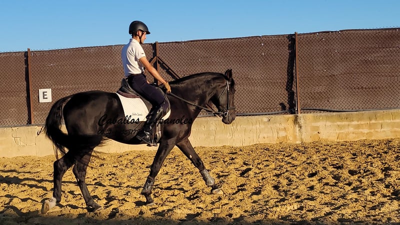 Large-framed, beautiful PRE stallion with a harmonious build. He will become an impressive Spaniard. The stallion is affectionate and well-behaved, always attentive to people and in a good mood. He is equipped with three good basic gaits. The young horse has been gently started under saddle. He is now ridden without a lunge line. He immediately gives a very trustworthy feeling. Motorcycles have often revved loudly on the neighboring property, but this did not impress him at all. A really great guy looking for a great person. The price is also very interesting. Pedigree: Sire is a Torreluna, whose sire is Hacendado and PamperV (both Marín García). The dam is from Nero Maynou II - last photo. The horse is being sold on commission. He can remain in training with us if desired. A pre-purchase exam can be organized at short notice. International transport available.