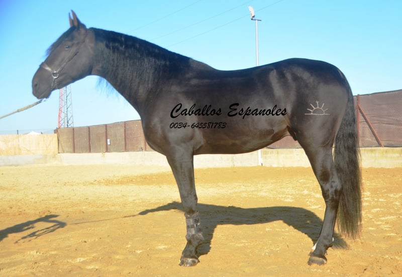 Hermoso semental PRE de gran alzada y armoniosa conformación. Se convertirá en un impresionante español. El semental es cariñoso y bien educado, siempre atento a las personas y de buen humor. Está dotado de tres buenos aires básicos. El joven ha sido domado con suavidad. Ahora se le monta sin cuerda. Inmediatamente transmite mucha confianza. En el campo vecino siempre había motos aullando. Pero eso no le impresionó. Un gran tipo que busca una gran persona. El precio también es muy interesante. Pedigree: Su padre es un Torreluna, que a su vez es hijo de Hacendado y PamperV (ambos Marín García). La madre es de Nero Maynou II - última foto. El caballo se vende por comisión Es bienvenido a quedarse con nosotros en el entrenamiento. Un AKU se organizará a corto plazo. Transporte internacional.