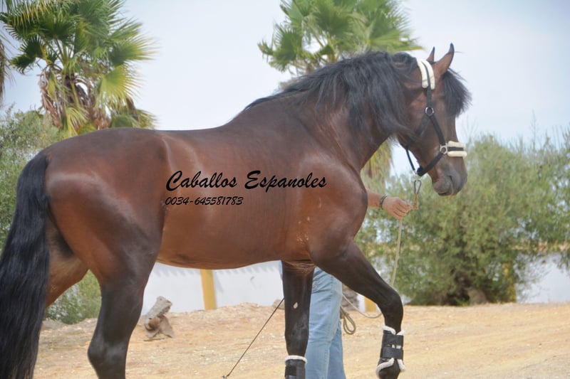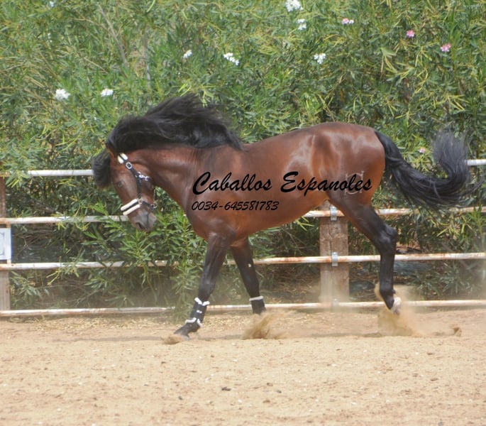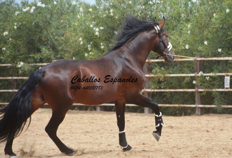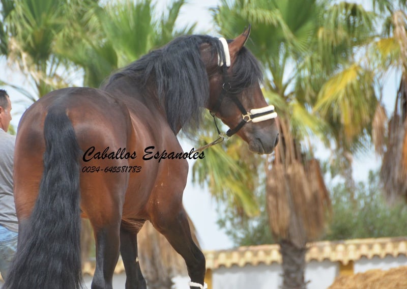 Was ein Kracher! Ihn wird man im Dressurviereck bestimmt nicht übersehen. Wer einen PRE Hengst mit Bewegung sucht - hier ist er. Er stammt aus dem renomierten Gestüt Felipe Garrocho und ist dressurgezogen - väterlicherseits finden wir viel Candau. Der junge Hengst ist brav im Umgang, ist in den Grundgangarten geritten, es wird an den Seitengängen gearbeitet. Der Hengst wird 3-4 Mal die Woche gearbeitet, in der Halle, wie auch draußen auf dem großen Platz. Für Schmuseeinheiten ist er stets zu haben. Er ist mit drei hervorragenden Grundgangarten ausgestattet, eine ordentliche Größe, womit er sich für die Dressur empfiehlt. Das Pferd wird im Auftrag verkauft. Er kann gerne bei uns noch in Beritt bleiben. Eine AKU wird kurzfristig organisiert. Internationaler Transport.