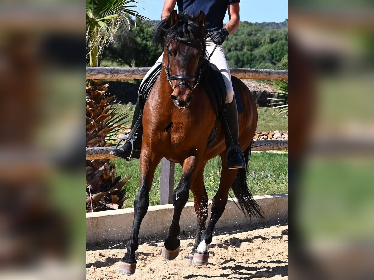 Dieser 2020 geborene, reinrassige PRE Hengst (Andalusier mit Rassenachweis der ANCCE), ist ein richtiges Powerpaket der nur so vor Elan bei der Arbeit strotzt! Er kommt von einem liebevollen Züchter, wo Spätentwickler wie die Spanier, das bekommen, was sie wirklich brauchen- Zeit! So ist er bis 3 in der Hengstherde komplett roh gestanden, wurde dann kurzzeitig aufgestallt, um die Basics zu lernen und dann wieder in den Urlaub entlassen, um alles mit Zeit zu verarbeiten. So hat er aktuell eine gute Basis unter dem Sattel, wo besonders darauf geachtet wird, dass er gut zu differenzieren lernt, zwischen seinem Vorwärtsdrang und Ruhephasen unter dem Reiter. Er lernt immer besser, sich selbst zu tragen, sich zu strecken und Ruhephasen zu verlängern, was sehr schön zu sehen ist. Ein Pferd, dass nicht in der Ausbildung gehetzt wurde, sondern sich erst finden darf und lernt die Energie zu lenken. Und Arbeitswillen hat er ohne Ende! Wo anderen schnell die Puste ausgeht, gibt er mehr und ist unermüdlich, womit er bestimmt ein Ideales Pferd für sehr ambitionierte Reiter ist, die gerne regelmäßig und gezielt trainieren. Geritten wird er auf doppelt gebrochener Wassertrense und ist nur an den Vorderhufen beschlagen. Nachts lebt er auf einem Hengstpaddock, was seinem Kopf auch sehr gut tut und tagsüber ist er in der Box für fürsorgliche Pflege und die korrekte Fütterung ist so besser garantiert. Ausritte auf dem hektargroßen Areal tun ihm auch gut und man merkt richtig, wie er da in seine Mitte findet, als positive Abwechslung zum Viereck. An leichten Arbeitstagen geht er in die Führmaschine und wird auch so weiter bemuskelt, ohne Gewicht zu tragen. In seiner Abstammung finden wir Ausnahmehengste wie YACO de TORRELUNA, ERMITAÑO III und sein Bruder ist sehr erfolgreich in der Dressur und hat es sogar zum SICAB (Weltmeisterschaft der PRE) geschafft. Er hat noch nicht gedeckt und kennt es, in der Nähe von Stuten zu sein, wobei die Option der Kastration vor Ort, selbstverständlich besteht. Aktuell misst er 157cm und hat ein schön barockes Exterieur, mit einem feinen Spanierkopf und guten Bewegungen, die ihn für viele Sparten mit hohem Arbeitsniveau interessant machen. Preiskategorie E! Sein Standort ist Menorca. Videos und Abstammung gerne auf Anfrage. Gerne organisiere ich vor Ort eine AKU, Beritt, Kastration, Transport oder auch ihre Reise, sollten Sie persönlich zum Anschauen kommen. Details dazu gerne auf meiner Seite oder im Gespräch. Saludos aus Spanien