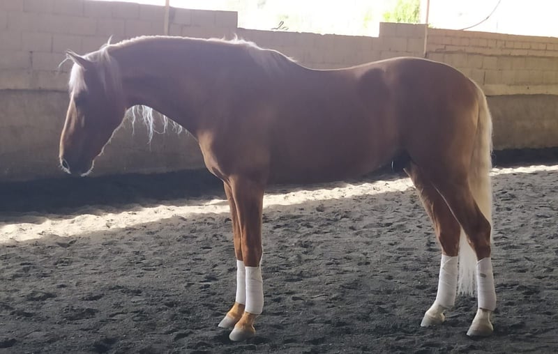 rêve doré : beauté, douceur et plaisir à chaque pas Il existe des chevaux qui semblent tout droit sortis d'un conte de fées, et celui-ci en est l'exemple parfait. Son pelage palomino brille comme de l'or, mais c'est son cœur qui fait toute la différence : un caractère doux, un grand désir d'apprendre et des compétences qui en font le compagnon idéal, que ce soit pour une balade amusante en arène ou une sortie relaxante. Bien avancé dans son travail, il exécute facilement des mouvements latéraux, le reculer, le faux galop et commence à maîtriser les changements de pied simples. Il réalise chaque exercice avec une légèreté qui rend tout semblant facile : toujours attentif aux aides, toujours prêt à donner le meilleur de lui-même, sans jamais compliquer les choses. C'est le type de cheval qui vous fait sourire. Celui qui impressionne lorsqu'il entre dans l'arène, mais qui vous charme par sa douceur et sa sérénité une fois hors de la selle. Parfait pour un cavalier à la recherche d'un cheval polyvalent : assez élégant pour briller, assez équilibré pour continuer à progresser, et assez calme pour savourer chaque moment sans stress. Si vous rêvez d'un cheval qui a tout - beauté, talent et un grand cœur - ce palomino est ce trésor rare qui ne se présente qu'une fois. Un compagnon parfait pour ceux qui souhaitent profiter du voyage tout en brillants de mille feux. ✨ Chez IberHorse, nous sélectionnons des chevaux uniques pour les cavaliers à la recherche de plus qu'un simple partenaire. Si vous pensez que ce cheval doré pourrait être le vôtre, parlons-en. ----------------------------------------------------------------------- Ce cheval a été sélectionné par IberHorse.com après avoir passé nos tests rigoureux de santé, de comportement et de formation. Découvrez plus de photos et vidéos en recherchant son nom dans notre catalogue : iberhorse.com/catalogue/ Chez IberHorse, nous savons qu'un cheval est plus qu'un simple achat - c'est un compagnon pour la vie. C'est pourquoi nous vous offrons : ✅ Une large sélection de chevaux soigneusement choisis. ✅ Un processus d'acquisition rapide et sans stress. ✅ Un soutien professionnel et personnalisé avant, pendant et après votre achat. ✅ Une expérience complète, y compris des contrôles vétérinaires et un transport international. Faites confiance à nos 13 années d'expérience et trouvez votre cheval idéal avec IberHorse !