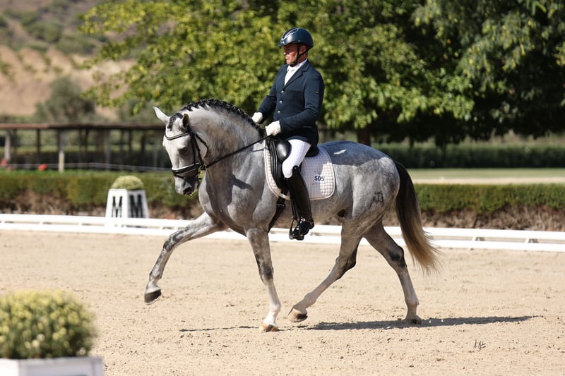 Caballo de 6 años, en plena madurez para iniciar y consolidar su carrera en la doma clásica. Presenta un carácter manso y equilibrado, muy fácil en el trato diario, tanto pie a tierra como montado. Destaca por su gran nobleza, siempre dispuesto a colaborar con el jinete y con una actitud positiva hacia el trabajo. En el trabajo muestra cambios de pie limpios y , bien rectos y con buen ritmo. Comienza a desarrollar principios de passage y piaffe, demostrando capacidad natural para la reunión, elevación y cadencia. Es un caballo con proyección deportiva, ideal para jinetes que busquen un compañero joven pero ya encaminado en los ejercicios de mayor nivel.