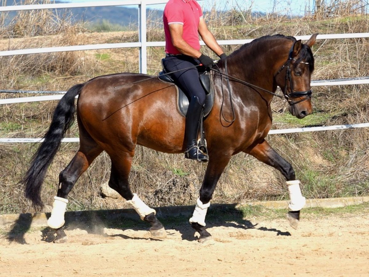 Discover this extraordinary specimen born in 2020, a bay PRE that captivates with his elegance and nobility. With a height of 1.69 metres, this P.R.E. horse stands out not only for his imposing presence, but also for his docile character and his ease to be ridden by any rider with a minimum of experience. Grandson of the renowned Trovador IX and Baldolivas, his lineage guarantees exceptional quality. His level of equitation allows him to perform supports, pirouettes and he is even starting to flying changes, which makes him an ideal choice for those who are looking for a versatile horse with projection. Don't miss the opportunity to acquire this magnificent specimen, perfect for those who are looking for a horse for sale that combines nobility, skills and an outstanding lineage.