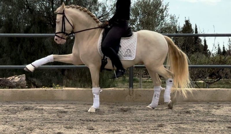 On behalf of a customer: Dulzon is a beautiful PRE stallion in a sought-after special colour. This lovely stallion has already been ridden well, rides at L/M level and is also proficient in piaffe, Spanish walk and changes. Naturally on a snaffle. He is reliable under saddle and learns quickly. He knows children, dogs, road traffic etc. Dulzon comes from the very best upbringing and has grown up in a herd. Accordingly, he is well socialised. He comes with full PRE papers and the best pedigree. Location: Spain - transport can be organised worldwide