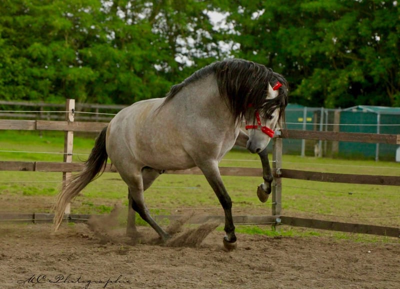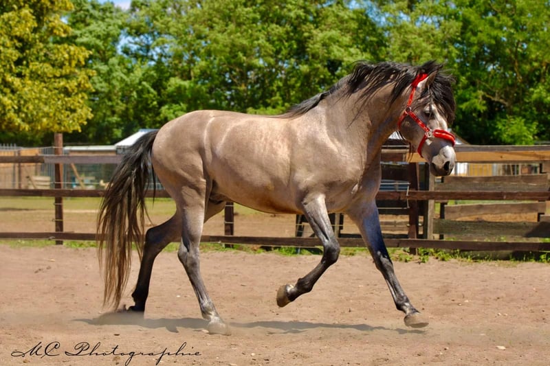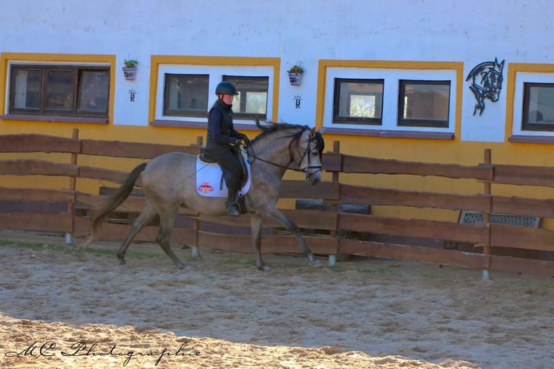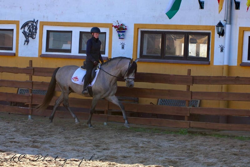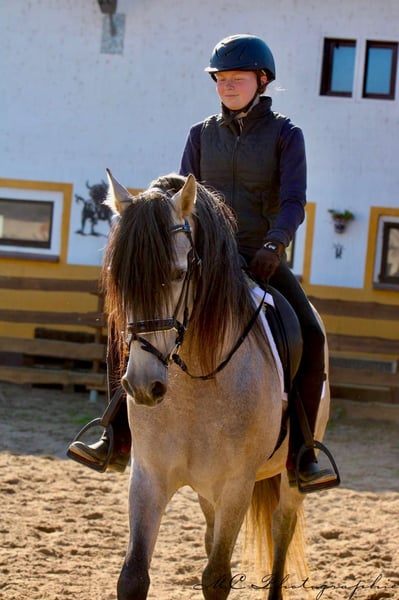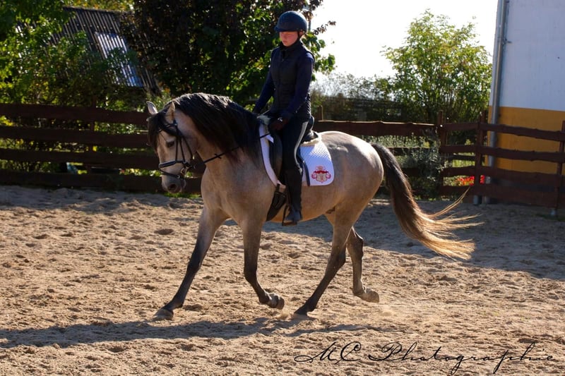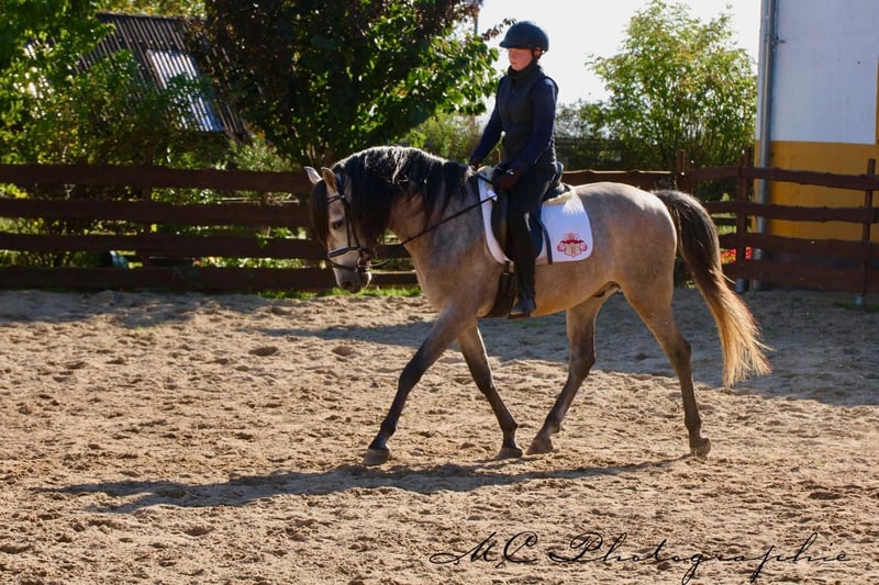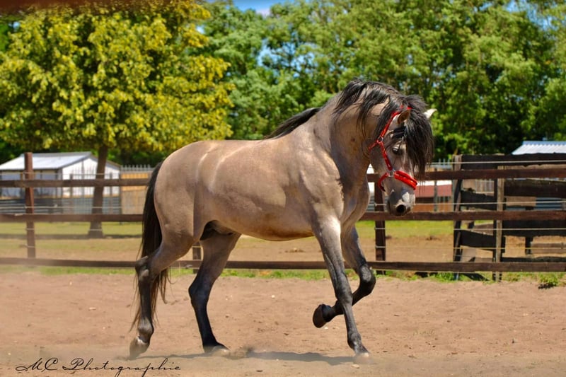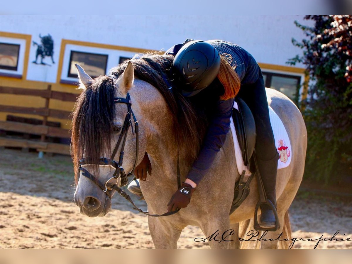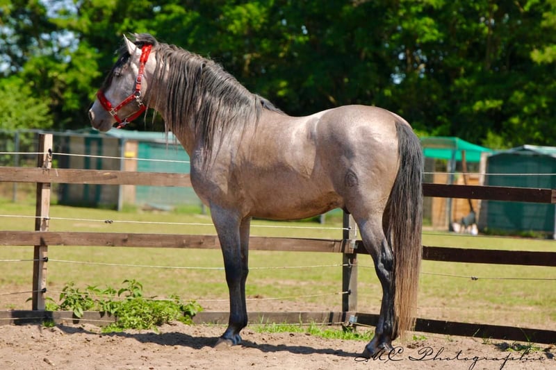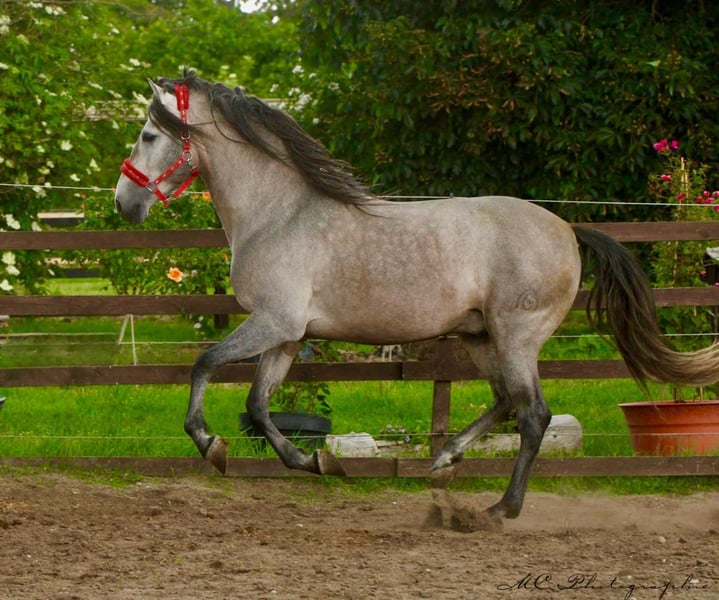 **Sales Advertisement: PRE Stallion for Sale** We offer a beautiful PRE stallion for sale. **Features:** - **Breed:** PRE (Pura Raza Española) - **Gender:** Stallion - **Year of Birth:** 2019 - **Color:** Brown dapple gray - **Height:** 163 cm - **Discipline:** Dressage, Leisure Our stallion impresses with his elegant appearance and balanced temperament. He has great potential in dressage and is already showing promising progress in his training. He is well-mannered, easy to handle, and is suitable for both experienced riders and ambitious beginners who want to provide him with a loving and supportive environment. If you are interested or have any further questions, we look forward to your message! **Location:** Germany, like all our horses **Contact:** Tel: 034292-79256 We look forward to your inquiry!