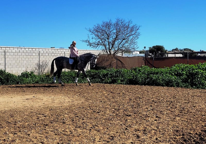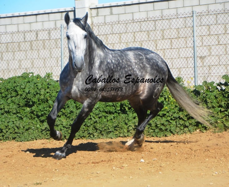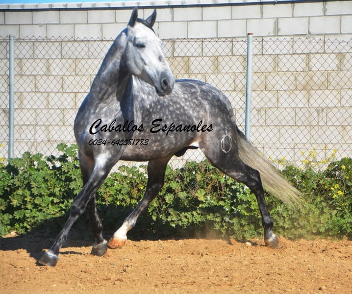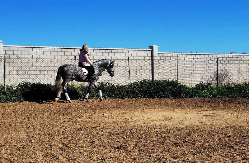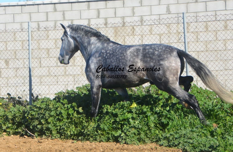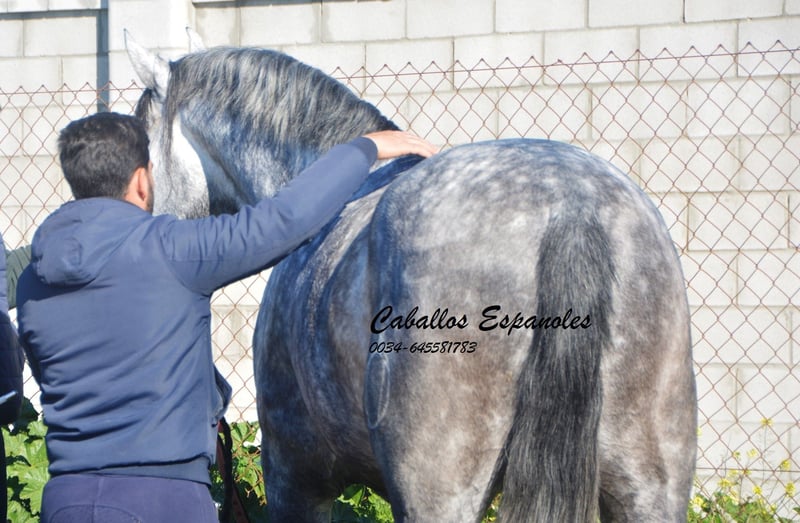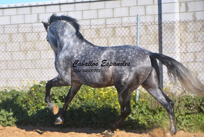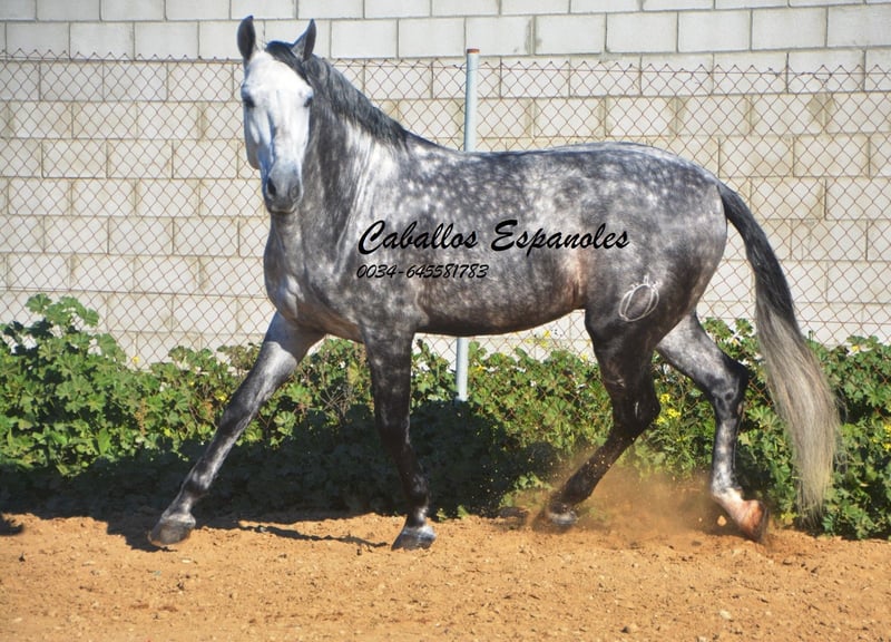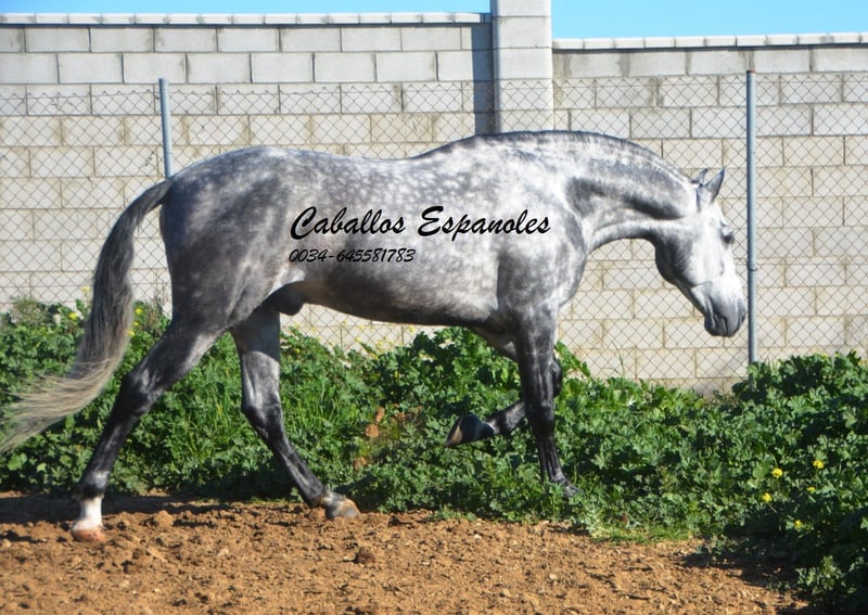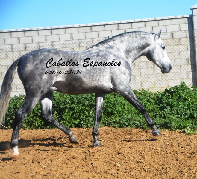 Imposanter, barocker PRE Hengst, der korrekt und harmonisch gebaut ist. Der Hengst stammt väterlicherseits von Remache - Yaco- Pampero ab. Der Hengst ist mit drei guten Grundgangarten ausgestattet. Er ist in den Grundgangarten geritten, kann Schenkelweichen, Schulterherein. Er ist anpiaffiert, lernt den Paso espanol und macht auch schon einige Schritte in der Passage. Beim Reiten gab er mir ein vertrauenvolles Gefühl, was sich im Gelände nicht änderte. Mit etwas Feinschliff wird das ein toller Hengst. Das Pferd wird im Auftrag verkauft. Er kann gerne bei uns noch in Beritt bleiben. Eine AKU wird kurzfristig organisiert. Internationaler Transport.