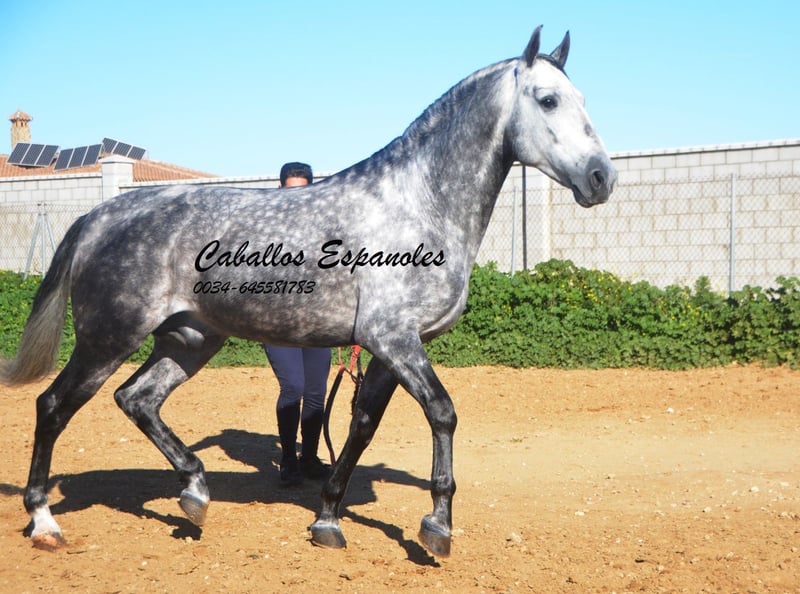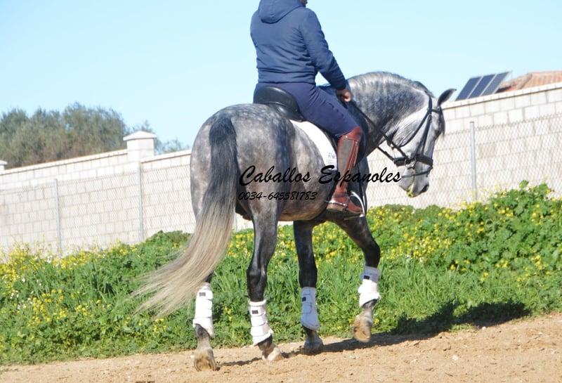 Impressive, baroque PRE stallion with a correct and harmonious build. The stallion is sired by Remache - Yaco- Pampero. The stallion has three good basic gaits. He has been ridden in the basic gaits and is capable of leg yields and shoulder-in. He is piaffeed, is learning the Paso espanol and is already taking a few steps in the passage. When I rode him, he gave me a feeling of trust, which didn't change in the arena. With a little fine-tuning, this will be a great stallion. The horse is being sold on commission. He is welcome to stay with us in training. An AKU will be organized at short notice. International transportation.