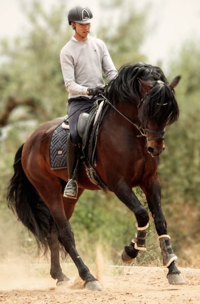 💥WAT EEN PAARD 💥 Kenners en liefhebbers van het Spaanse ras opgelet!!! Een buitengewoon en elitair hengst van de hoogste klasse zoekt zijn forever home bij iemand die zijn kwaliteit weet te waarderen. Hij is 100% Escalera-gefokt en komt uit de wereldberoemde fokkerij van "Maria Fernando de la Escalera". Zijn pedigree spreekt voor zich en hoeft niet extra benadrukt te worden. De elitehengst "Educado X" als grootvader onderstreept al zijn kwaliteit. Deze knappe gentleman gedraagt zich in alle opzichten voorbeeldig, vertoont geen hengstmanieren en is in de dagelijkse omgang een ware schat. Deze bijzondere parel onder de PRE's overtuigt niet alleen door zijn prachtige, barokke uitstraling, maar ook door zijn bijzonder zachte en toegankelijke aard. De adembenemend mooie hengst is altijd volledig bij zijn ruiter, zowel op de piste als in het terrein. JAPONÉS bevindt zich in professioneel training en heeft inmiddels een goed L-niveau bereikt. Er is ook begonnen met enkele M-ritten en hij springt al enkele vliegende wissels. Daarnaast heeft hij al eens een concourservaring opgedaan. Hij werd, naast het beoordelen, gereden op verschillende africhtingsplaatsen van lokale wedstrijden om hem aan de sfeer te laten wennen. Hij is altijd buitengewoon braaf, netjes en werkbereid – ook in een vreemde omgeving. Japonés beschikt over een ongelooflijk groot potentieel voor het grote circuit. Met de juiste begeleiding is een sportcarrière zeker mogelijk. Vanwege zijn geweldige karakter zou hij ook voor elke recreatieve ruiter een trouwe metgezel kunnen zijn. JAPONÉS heeft al actuele röntgenfoto’s zonder afwijkingen en is ook pirovrij. Zijn uitstekende kwaliteit heeft vanzelfsprekend ook zijn prijs. Daarnaast is een keuringsaanvraag bij de ANCCE waarschijnlijk slechts een formaliteit. Wie deze extravagante, knappe jonge heer aanspreekt, gelieve te bellen met telefoonnummer zodat ik zo snel mogelijk contact met u kan opnemen.