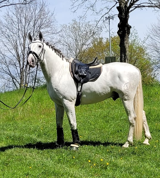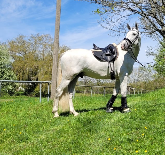-->He has it all!! Diese 4j barocke Schönheit mit top Abstammung (!) beeindruckt in der täglichen Arbeit durch einen einwandfreien Charakter und sehr viel Qualität für die Dressur! Altersentsprechend und professionell ausgebildet befindet er sich aktuell auf einem reellen A Niveau, mit weiteren Lektionen wurde spielerisch begonnen. Er verfügt über besonders hohe Rittigkeitswerte, ist sehr sitzbequem und bringt besonders viel will to please mit! Zu unserem Ausbildungskonzept gehören ebenfalls Antischeutraining, Verladetraining, Bodenarbeit Geländearbeit inklusive Straßenverkehr! Er glänzt in allen Bereichen! Auch konnte er bereits erste Turniererfahrungen sammeln und zeigte sich in fremder Umgebung ebenfalls vorbildlich! Selbstverständlich ist er klinisch und röntgenologisch untersucht, mit einwandfreiem Ergebnis! Unsere Pferde können auf Kundenwunsch noch weiter bei uns in Beritt bleiben oder auch gelegt und wieder antrainiert werden! !Nicht all unsere Pferde sind inseriert, sprechen Sie uns gerne an: 01520 2833968! Melden Sie sich gerne telefonisch oder per WhatsApp für weitere Informationen oder einen Probereittermin auszumachen! Zum Schutz unserer Pferde berechnen wir hierfür eine Gebühr von 35 €.