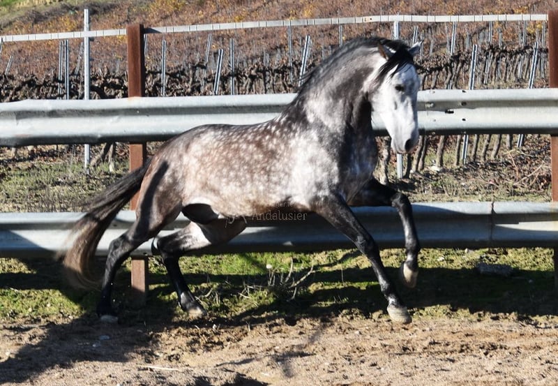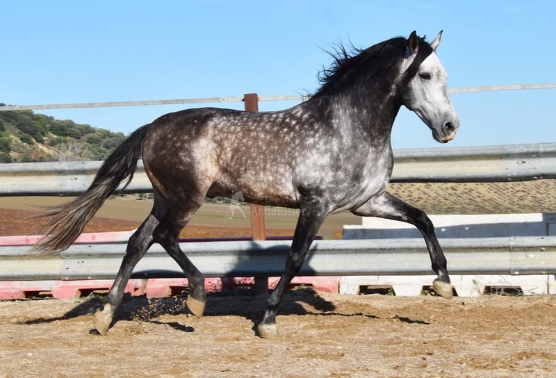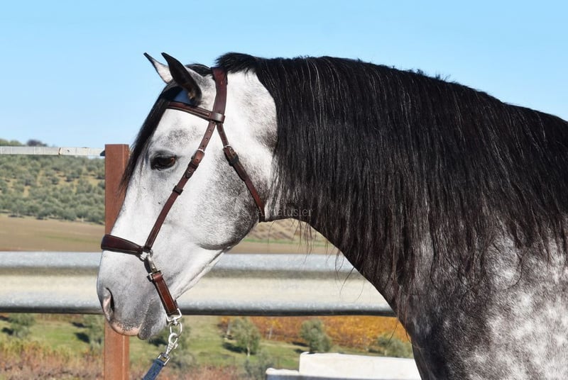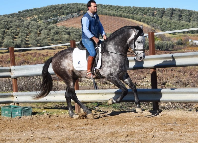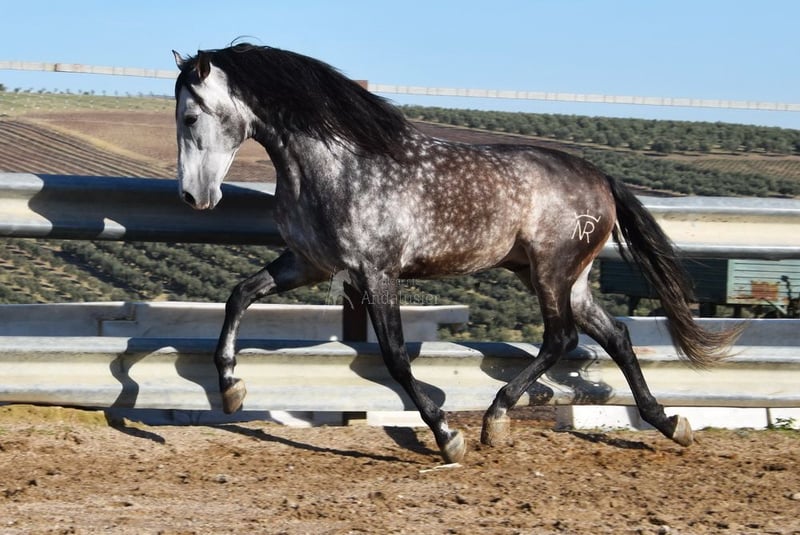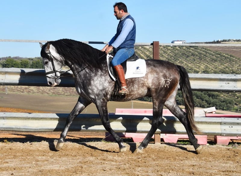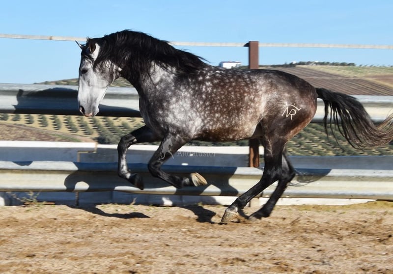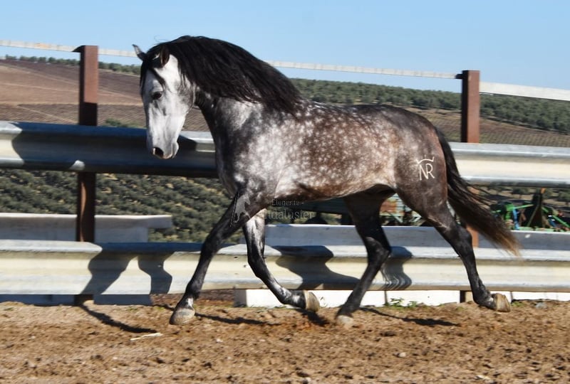 caractère doux, monté aux trois allures de base, reculer, beaucoup de terrain, Romería, très grand, baroque, bonne lignée, origine : Nicolas Romero, a plusieurs ancêtres qualifiés www.elegante-andalusier.com