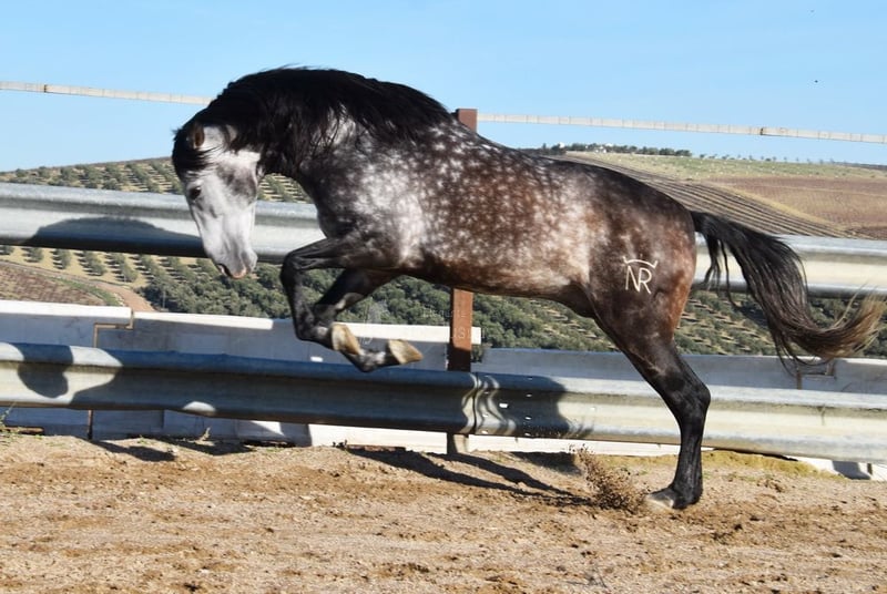 lieber Charakter, in den Grundgangarten geritten, Rückwärtsrichten, viel Gelände, Romería, sehr groß, barock, gute Abstammung, Abstammung: Nicolas Romero, hat mehrere qualifizierte Vorfahren www.elegante-andalusier.com