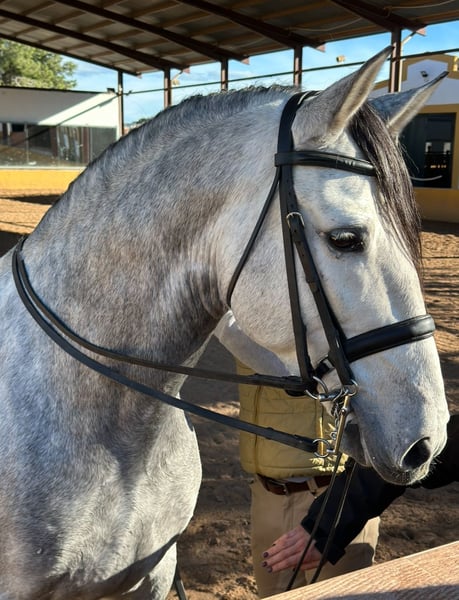✨HEARTBREAKER MANDARINO V: SUPER BAROKOWY I DOSKONALE JEŹDZONY PRE Z PIĘKNĄ CHARAKTEREM/SUPER BAROKOWY I DOSKONALE JEŹDZONY PRE Z TRAFNYM CHARAKTEREM✨ Rasa - Breed: Pura Raza Española (ANCCE) Płeć - Gender: Ogier / Stallion Wiek - Age: 03/2018 Wzrost - Height: 1,64 m Edukacja - Education: Half-Pass / Traversale, Changes / Wechsel, Spanish Walk / hiszpański krok Lokalizacja - Location: Walencja, Hiszpania 🇪🇸 ✔️w pełni przebadany, z wszystkimi RTG Poznaj Mandarino: naszego niezwykle przystojnego i doskonale jeździonego ogiera PRE! Mandarino to bardzo typowy i barokowy PRE z dużą szyją i piękną głową. Posiada trzy znakomite chody do klasycznej ujeżdżenki i jest bardzo dobrze jeźdzony. Pod siodłem jest zawsze łagodny, przyjemny w obsłudze i radosny w jeździe. Na wędzidle zarówno na bridle typu snaffle, jak i na podwójnym! Mandarino ma niezwykle słodki charakter i uwielbia być obdarzany uwagą przez ludzi. Oczywiście jest w pełni przebadany, posiada pełną dokumentację ANCCE oraz doskonałe pochodzenie. Jeśli chcesz dać temu wspaniałemu chłopakowi kochający dom na zawsze, skontaktuj się z nami przez WhatsApp ➡️ +34 622 509 702 Mówimy 🇬🇧🇩🇪🇪🇸