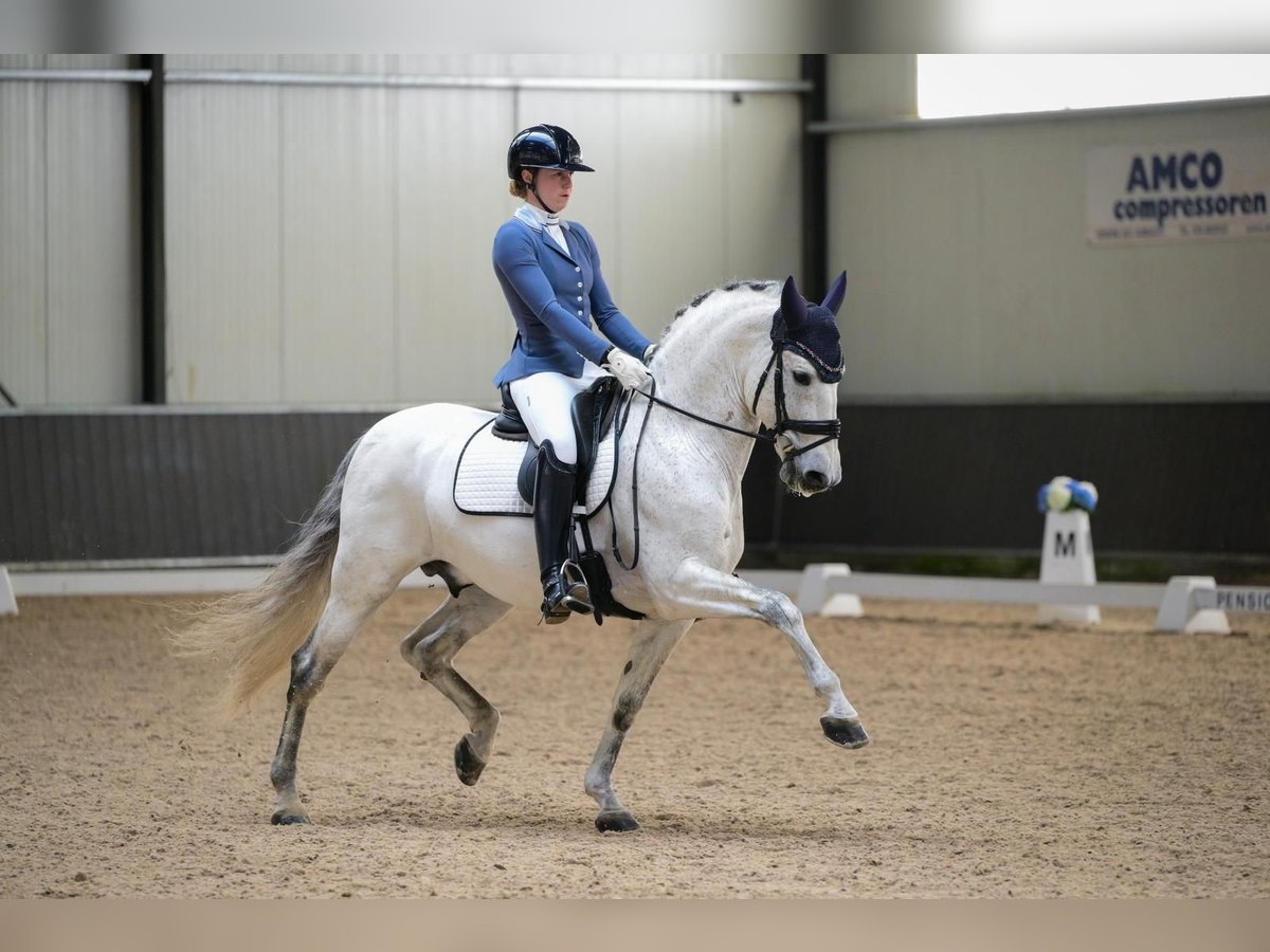 Elias Torreluna is a beautiful grey stallion with a golden character. Elias is a horse that steals your heart right away with his hugs, his beautiful long mane and his beautiful silver glow. He has 3 very good gaits. He possesses a good walk, a great trot with very good hind leg and an uphill canter that is easy to close, he super nice to ride and really gives you a wow feeling. Elias is a suitable horse for both an ambitious rider but certainly also for a novice rider. Elias is classified Z2 and is trained at ZZ light level, he has a lot of talent for passage piaf. Amzone is 1.78. NL Stables Elias Torreluna has already achieved many nice results with his young age. During the Dutch Championships MCI young horses 2023 he became reserve champion with an average score of 86%. Also, this PRE stallion did good business at the European Championships in Paris, he managed to win the first class in the young horses and achieved an overall bronze medal in this class. In the selection trail for the MCI 2024 European Championships, Elias became Dutch champion with a score of 73% in the test and 77% in the Freestyle Level 2. This qualifies him again for the EC MCI 2024 in Exloo. Here he earned the title European Reserve Champion Sevilla and won team gold again for the second time in a row in addition to individual silver. Besides his achievements in the ring at the MCI, Elias is also doing good business at the KNHS competitions. He has several wins to his name among the warmbloods in Z1 with scores around 68% and in Z2 with scores around 67%. Elias finished fourth in Z2 at the KNHS indoor championships 2025. Elias comes directly from the breeder Yeguada Torreluna, fully approved including neck and back.