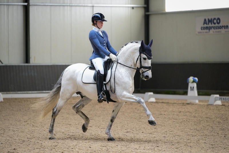 Elias Torreluna es un hermoso semental tordo con un carácter de oro. Elias es un caballo que te roba el corazón de inmediato con sus abrazos, su hermosa melena larga y su precioso brillo plateado. Tiene 3 aires muy buenos. Posee un buen paso, un trote amplio con muy buen posterior y un galope ascendente que es fácil de cerrar, es muy agradable de montar y realmente te da una sensación de asombro. Elias es un caballo adecuado tanto para un jinete ambicioso como para un jinete principiante. Elias está clasificado en ZZ Licht y se entrena a nivel ZZ Zwaar, tiene mucho potencial para passage y piaffe. Amazona mide 1.78. NL Stables Elias Torreluna ha logrado muchos resultados hermosos a una edad temprana. Durante el Campeonato Holandés MCI de Caballos Jóvenes 2023 fue subcampeón con una puntuación promedio del 86%. Este semental PRE también tuvo un buen desempeño durante el Campeonato Europeo en París, ganó la primera prueba en la categoría de caballos jóvenes y obtuvo una medalla de bronce en la clasificación general de esta categoría. En el proceso de selección para el Campeonato Europeo MCI 2024, Elias se convirtió en campeón holandés con una puntuación del 73% en la prueba y 77% en la kür nivel 2. Con esto, se califica nuevamente para el Campeonato Europeo MCI 2024 en Exloo. Aquí obtuvo el título de subcampeón europeo en Sevilla y ganó por segunda vez consecutiva, además de la plata individual, el oro por equipos. Además de sus logros en la pista con el MCI, Elias también tiene buenos resultados en las competiciones de la KNHS. Ha conseguido múltiples victorias entre los caballos de sangre caliente en Z1 con puntuaciones alrededor del 68% y en Z2 con puntuaciones alrededor del 67%. Elias quedó cuarto en el Z2 durante los campeonatos de interior de la KNHS 2025. Elias proviene directamente del criador Yeguada Torreluna, completamente aprobado incluyendo cuello y espalda.