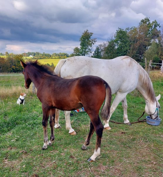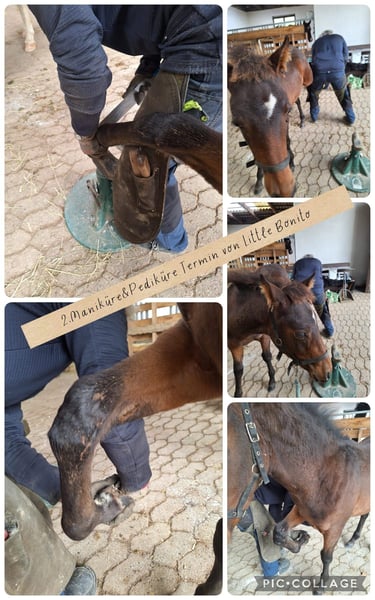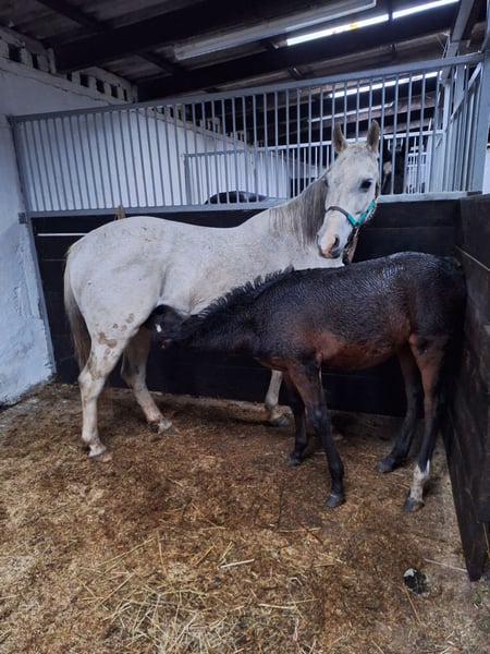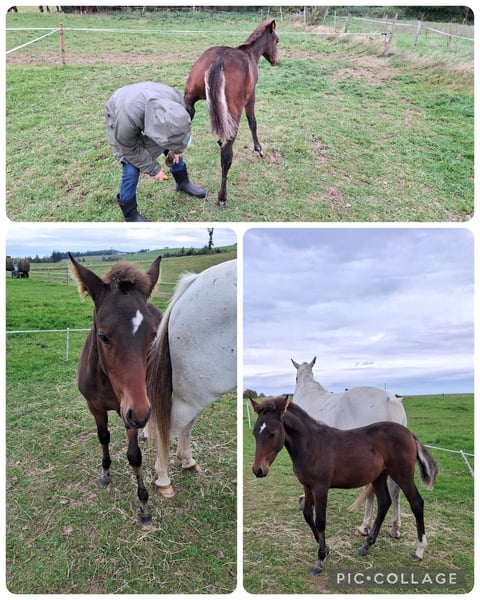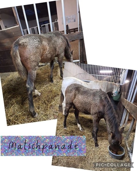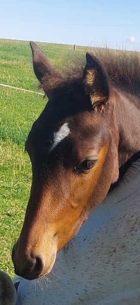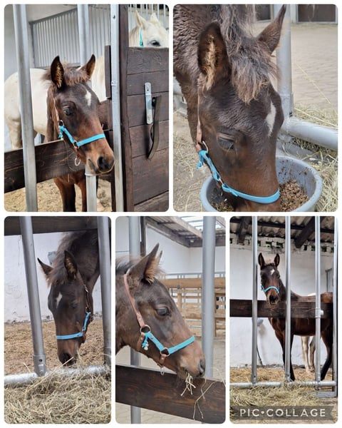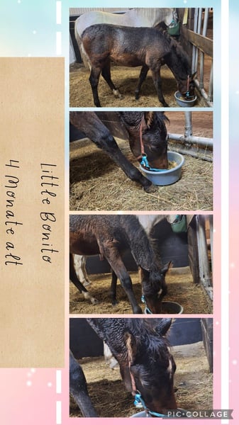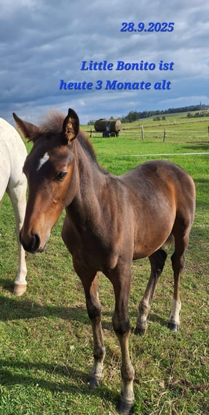 Meine Araber-Mix-Stute hat am 28. Juni 2025 ein wunderschönes Hengst Fohlen, mit dem Namen Little Bonito auf die Welt gebracht. Der Papa von Little Bonito ist ein schwarzer PRE Little Bonito darf mit 6 Monaten als Absetzer ausziehen. Das Fohlen ABC läuft seit Tag 1 und Little Bonito macht sich richtig gut dabei :-) Little Bonito befindet sich gerade im Fellwechsel, wie man den Fotos entnehmen kann. Die erste Hufbearbeitung von Little Bonito war am 28.08.2025 und die zweite Hufbearbeitung war am 14.10.2025. Am 01.12.2025 erfolgt dann die nächste Hufbearbeitung. Wer ernsthaftes Interesse an Little Bonito hat, darf sich gerne melden und sich vor Ort in ihn verlieben :-) Es handelt sich hierbei NICHT um einen Notverkauf und der Preis ist nicht verhandelbar.