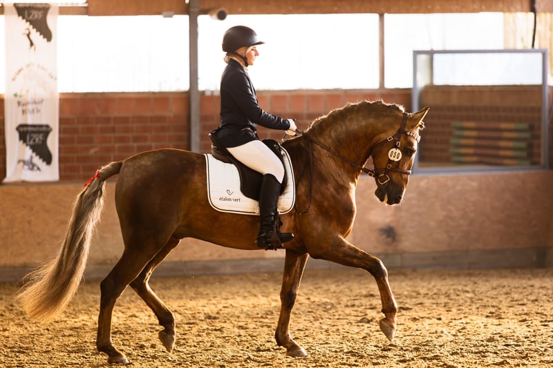 Pura Raza Española stallone da riproduzione Estudioso de Viñuela Tutte le informazioni importanti le trovate sul suo sito web o su Facebook: https://estudioso-de-vinuela.jimdosite.com Per tutte le razze di cavalli! Estudioso de Viñuela Attualmente disponibile per SEME FRESCO 2025* in tutta l'UE / in modo molto semplice. Da agosto in monta naturale per un numero limitato di fattrici. _ Stallone PRE | sooty Palomino con gene crema e omozigote nd1 (Pseudo Dun). - 1.64 e 6 anni. • Registrato ANCCE, Zfdp e Azteka. Autorizzato per razze estere* Estudioso de Viñuela è STATO APPROVATO dall'ANCCE. I suoi puledri fino ad ora si distinguono per il loro aspetto, dimensioni, fascino e colore. Estudioso è una vera rarità ed è l'UNICO stallone PRE disponibile in Germania con questo colore speciale! È esente da malattie ereditarie come PSSM, HERDA, GBED, HYPP, IMM, MH e WFFS. È omozigote nd1 (Pseudo Dun) e trasmette questa particolare colorazione a tutti i suoi puledri al 100%! Estudioso attira tutti gli sguardi. Con il suo manto che brilla di oro e rame e la sua criniera grigia, non lascia desideri insoddisfatti come colore speciale. Ma non è solo il colore del suo manto a entusiasmare. Estudioso porta con sé tre andature di base straordinariamente ampie, un carattere forte e impavido e una buona volontà al lavoro. Questo gli consente di affrontare facilmente le alte lezioni della dressage. Il suo carattere è impeccabile e già in giovane età si mostra volenteroso, affettuoso verso l'uomo e con nervi saldi. Ha un'ottima AKU con radiografie e nessun difetto fisico. Ottima valutazione della conformazione durante l'approvazione. Posizione: NRW (Germania)