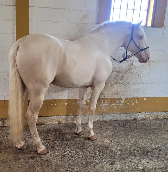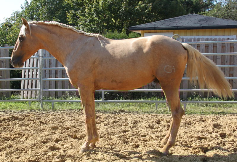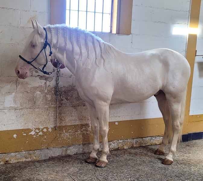 Are you searching for an absolutely extraordinary, baroque, golden-colored dream stallion to be the sire of your foal? Natural XIV is not only an outstanding specimen in terms of conformation but also in character! The Spanish breeding commission was very impressed by Natural’s calm, affectionate nature during the licensing in June 2025 in Germany. This, combined with his excellent conformation and stunning movement, earned him a rating of "Very High Breeding Quality." The licensing protocol explicitly highlights his outstanding temperament and excellent character, rating Natural XIV in both breeding quality and overall harmony with the grade "Very Good." In type, he is very baroque, resembling his sire Floc II (a Cremello stallion, seen in the last two pictures), to whom he bears a strong resemblance. We therefore expect Natural to pass on his beautiful head, elegant neck, golden shine, and dreamlike movements. Despite being only three years old, Natural’s temperament is fearless and confident, even in unfamiliar situations. He also exhibits very good movement, with an excellent walk, a superb canter, and a powerful, flowing trot. He is currently in training appropriate for his age and shows great motivation and willingness to work. He learns quickly and gladly and is fully focused on his handler. His color genetics are AaeeCrN. He carries a Cremello gene, which means he can pass on Palomino and Buckskin foals depending on the mare’s genetic makeup. With mares carrying the Creme or Pearl gene, he can produce Cremello, Perlino, Palomino, Buckskin, Palomino Pearl, or Baya Pearl foals, depending on the mare’s genetics. Starting April 1, 2026, Natural XIV will be available at the Steinsberg Stallion Station for mares of all breeds. The breeding fee is €700 for PRE mares and €600 for mares of other breeds. https://www.hengste-steinsberg.de/natural-xiv/ Mares can be inseminated with fresh semen on-site upon request. Alternatively, fresh semen can be shipped. Natural cover is also possible by mutual agreement. Natural is completely healthy and very robust. X-ray examinations show no findings. For more information, please contact us by phone or WhatsApp at 0179 922 4436.