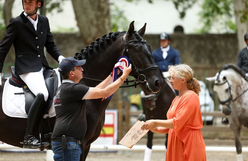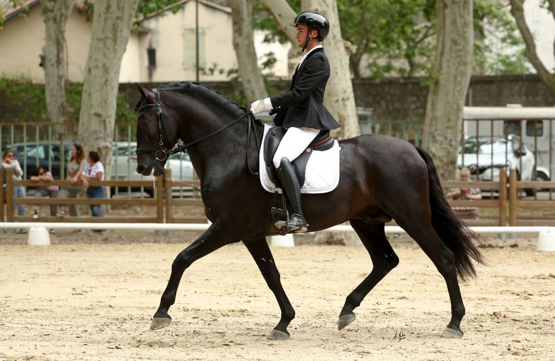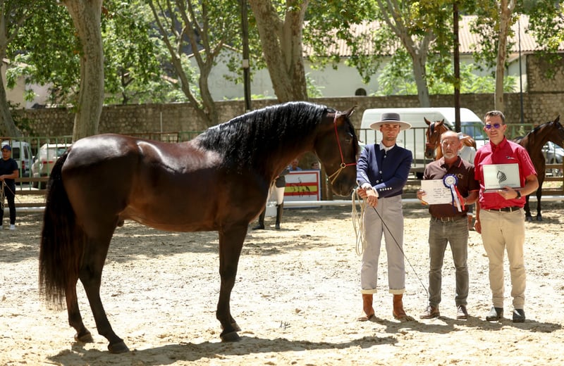 Are you looking for an exceptional stallion for your mares? Discover Jango, a majestic black stallion, combining elegance, power, and an outstanding character. Prestigious origins: Guardiola x Escalera, enriched by the Soto Gil lines, and stemming from the elite Corinto. Champion of functionality: Titleholder at Beaucaire in 2024, proof of impeccable morphology and functionality. Impressive size: 1.72 m of elegance and presence. Remarkable temperament: A balanced character, ideal for instilling confidence and maneuverability. Availability of semen: In IAF (Fresh Artificial Insemination) and IAC (Frozen Artificial Insemination). In IAR (Refrigerated Artificial Insemination) and IARR (Enhanced Refrigerated Artificial Insemination). Book your breeding and give your foals a promising future! Contact us now for more information and to schedule your visit. ✨