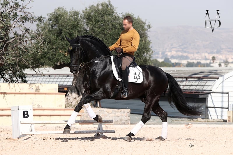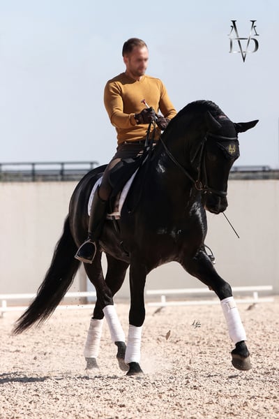 Purebred black Spanish stallion, Full papers, suitable for breeding, available for stud. (This horse is not for sale) Horse with excellent character, a powerful model (Dressage selection) and baroque. Coat: black. Size: 1.66 m Excellent pedigree (100% Escalera). ** French & European Masters Iberian Horse Champion 2022, Level 2** ** French & European Masters Iberian Horse Champion 2022, Level 2** ** French & European Masters Iberian Horse Champion 2022, Level 2 Artificial frozen insemination available for France and Europe for 2025 for a limited number of mares. Further information by private message. Service price: 600 euros excluding VAT for OC (Crossbreeding) 1500 euros for PRE (ANCCE)