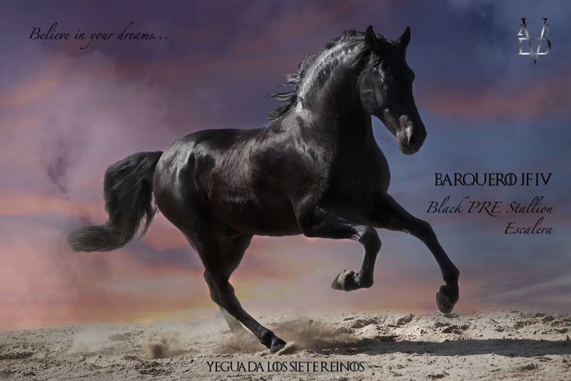 Czarny hiszpański ogier czystej krwi, pełne papiery, nadaje się do hodowli, dostępny dla stadniny. (Ten koń nie jest na sprzedaż) Koń z doskonałym charakterem, potężnym modelem (selekcja ujeżdżeniowa) i barokowym. Umaszczenie: czarne. Rozmiar: 1,66 m Doskonały rodowód (100% Escalera). ** Mistrz Francji i Europy Koni Iberyjskich 2022, poziom 2 Dostępny w mrożonej sztucznej inseminacji dla Francji i Europy na rok 2025 dla ograniczonej liczby klaczy. Więcej informacji w wiadomości prywatnej. Cena usługi: 600 euro bez VAT za OC (krzyżowanie) 1500 euro za PRE (ANCCE)