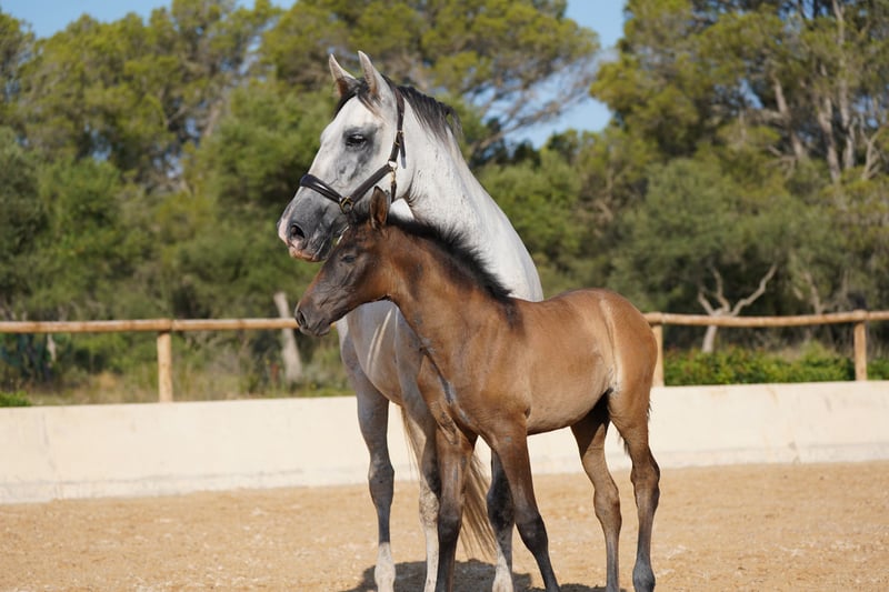 FER AGORA - a PRE rarity from the legendary lines of YEGUADA FERRERO and YEGUADA VILAIRE! Born at Yeguada Ferrero - by MAÑOSO II x JUDIO VII As a descendant of these two great stallions - she embodies the best of her ancestors! Fer Agora descends from the renowned Ferrero stud farm, which is known for its top horses - this stud farm stands for movement. Fer Agora is a true rarity, she is one of the last descendants of Mañoso II and combines the two great stallions. Her pedigree makes her a jewel in the PRE world. She is an excellent broodmare and gave birth to her wonderful filly Bienvenue des Ravella for the first time during Corona 4 years ago, all alone and without complications. The following year, Cacique des Ravella was born, a very harmonious and correctly built stallion - both foals are by Poeta de Susaeta. Then in 2023 came Ella des Ravella - a filly by LLanero de Martet, very tall and very well put together. Fer Agora has really excellent blood and very famous and successful siblings and relatives....allen voran FER BONACHON, FER GALLARDO, FER BAGO and FER TEMPRANILLO ....uvm.... These stallions are highly decorated and multiple world champions, especially FER BONACHON. Agora is enchanting and I fell in love with her eyes and her character when I found her as a 2 year old. She is a rather reserved mare, but not shy. My FER's all have a good character and are very willing to work with beautiful movements. Agora really passes on the best of her ancestors but also lets the stallion come through nicely. She is truly the born mother mare, so she took care of the nursery when the other mares were busy. Agora also lets the other foals drink from her udder, so I can well imagine that she would also stand in as a nurse mare. She is lunged and knows the saddle and bridle. My mares live in the paddock with shelter all year round, but they also know the box with paddock and are of course used to the farrier and vet, go into the hanger well and can be led by children..... A jewel - if you are looking for a great broodmare that embodies such great qualities as Agora, please write to me! We can also keep the mare here on site for you. We are happy to talk on the phone to answer any further questions you may have! Also by video call! ...or visit us at the Ravella by appointment! I will also be happy to help you with questions about transportation! welcome@es-ravella.com +491733630077 +34634314244