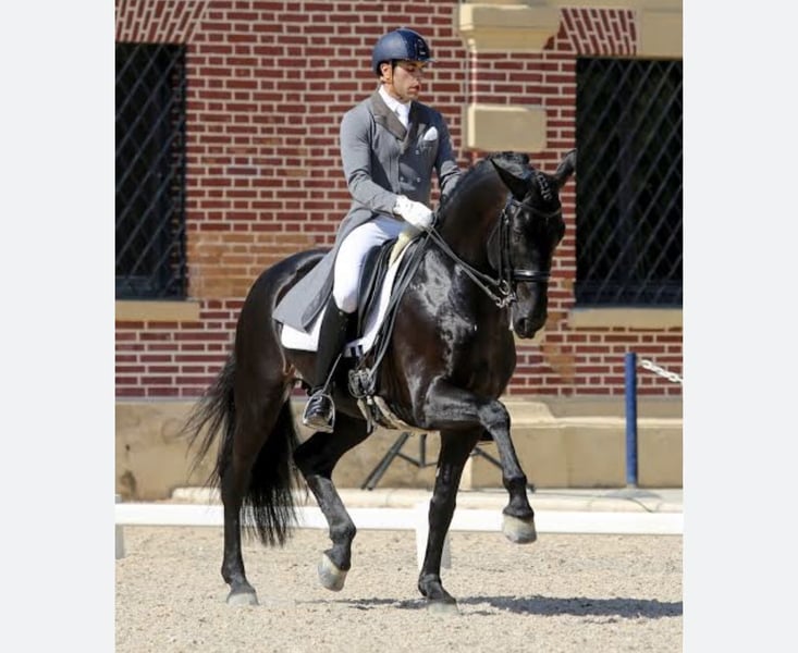 Champion-quality PRE mare with a filly daughter of Kafu III, a recommended sire for dressage. This mare boasts excellent pedigree and top-tier genetics. She can be sold alone or together with her filly. Photo and YouTube link of the sire competing in a Grand Prix. She has been ridden and tested before being designated for breeding, demonstrating great quality and a strong work ethic.