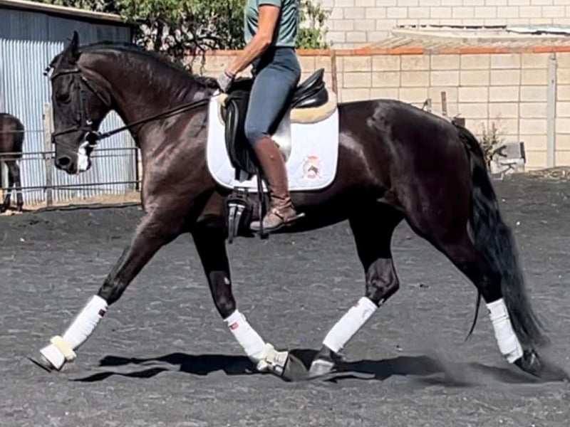 We present a magnificent Pura Raza Española mare born in 2012, with a height of 1.61 meters, offering a very balanced combination of experience, quality movements, and excellent temperament. She is a well-established mare with the ideal physical and mental maturity to be fully enjoyed both in the arena and outside of it. She is currently trained at Level 4 dressage, showing a solid foundation, correct frame, good balance, and a consistently willing attitude towards work. Her movements are correct, expressive, and functional, standing out for their regularity, elasticity, and ease of connection with the rider. She is a mare that transmits confidence, making her especially suitable for young riders, amateurs, or riding centers looking for a reliable horse. She has national competition experience in youth categories, which confirms her character, her generosity, and her ability to perform calmly and confidently in competitive environments. In addition, she hacks out without any issues, making her a complete and versatile mare, perfect both for daily training and for enjoying relaxing rides. Regarding her pedigree, she is sired by Manchego ARB and is a granddaughter of Gumiel, bloodlines that contribute functionality, good temperament, and dressage aptitude. A very interesting mare for anyone looking for quality, safety, and versatility in one single horse.