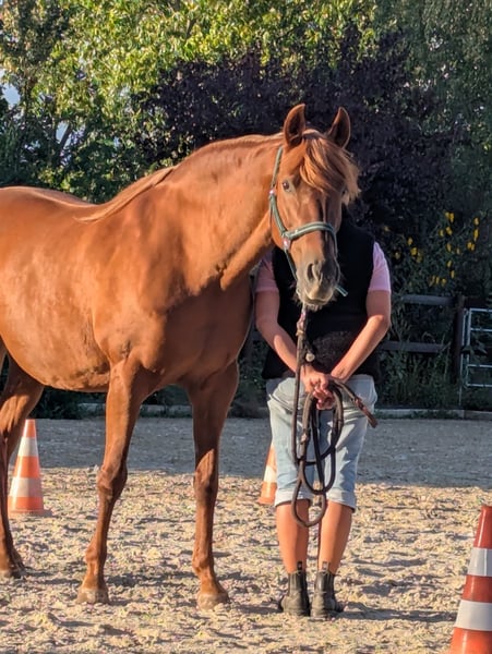 Mágica en Rojo, la Magique en Rouge, née en 2011, couleur alezan flaxé. Mágica en Rojo allie noblesse et douceur. Elle est détendue et calme, un véritable trésor à manipuler. Son mouvement est de première classe, merveilleusement dynamique, ample, régulier, sans campaneo (battement). Mágica est toujours amicale et équilibrée avec un feu doux. Sa volonté de travailler et d'apprendre est merveilleuse. Elle est issue de la lignée Escalera. Cette lignée est célèbre pour ses chevaux exceptionnels et sélectionnée selon des critères stricts de beauté et surtout de performance sportive. Ces chevaux correspondent à un idéal : des têtes nobles et sèches, légèrement convexes, avec des oreilles fines dont les pointes sont légèrement courbées vers l'intérieur. Des encolures plus légères et plus montables, mais correspondant toujours au type du Pura Raza Española. Une ligne supérieure presque carrée avec une bonne position de selle, et une très bonne angulation de l'arrière-main, pour ne citer que quelques caractéristiques. Son père, Unido IX (Royaume), fait honneur à son nom. Sa éleveuse n'est autre que Dona Maria Dolores Cortes de la Escalera. C'est un magnifique étalon alezan, très bien manipulé, qui prouve son talent polyvalent en dressage, lors de ferias en tant que cheval de parade et en attelage. Sa mère, Rociera LI, provient de l'élevage renommé de Don Hermanos Molero Malo. Elle a un caractère merveilleux et produit des poulains exceptionnels. Elle correspond au type typique du cheval élevé par Escalera, avec une grande aptitude au dressage. Comme nous l'aimons, Mágica en Rojo est d'un alezan éclatant, totalement sans marques blanches. Elle est une alezane claire, sa crinière est éclaircie par le gène flaxé et sa queue également, en espagnol cette couleur particulière est appelée "sorrel". Mágica a été l'une de nos juments de reproduction réussies, elle a eu quatre très bons poulains et est actuellement travaillée académiquement à la main. Elle connaît la selle et tout ce qui fait partie de la vie d'un cheval de selle, et nous avons déjà eu l'occasion de nous asseoir plusieurs fois sur son dos au pas. Mágica connaît la longe, elle est régulièrement utilisée chez nous pour l'entraînement à la condition physique et le développement musculaire. Pour Mágica, comme pour tous nos chevaux à vendre, nous souhaitons avant tout une personne aimante et responsable, qui traite avec soin et patience elle-même et le cheval. Nos chevaux sont complètement vierges et n'ont eu que de bonnes expériences. La taille a été mesurée à trois ans lors de la présentation. Mágica est vaccinée contre l'influenza, le tétanos et le virus du Nil occidental, et est vermifugée quatre fois par an. Elle a toujours été en bonne santé. https://www.treidelhof-gestuet.de/pura-raza-espanola-zucht/zuchtstuten-pre/m%C3%A1gica-en-rojo/