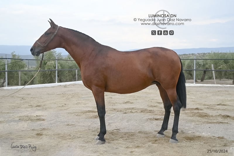 Zuchtstute mit nachweislicher Abstammung, Tochter des mehrfach ausgezeichneten Velero XI aus der Yeguada Militar, mit Nachkommen bei europäischen und amerikanischen Reitern. Zum Verkauf steht eine hervorragende PRE-Stute, geboren im Jahr 2008. Sie ist kastanienbraun, mit einer Stockmaß von 1,66 m, ideal für alle, die ein Pferd mit beeindruckender Erscheinung und edlem Wesen suchen. Sie stammt aus einer ausgezeichneten Linie und vereint Schönheit, Widerstandskraft und Charakter – perfekt für die Zucht; sie ist an die Kutsche gewöhnt. Genetischer Hintergrund (Genotyp): ggAAEeCCNN Ausbildung: im Stall- und Kutschengang; erste Schritte im Fahren. Bemerkungen: sehr gute Abstammung und Bewegungen. Sie bringt Nachkommen in den Farben Bay, Palomino, Alazan, Kastanie und Torda hervor. Linien: Levitón, Deco, Velero XI, Lego, Deco, Agente, Colombiano III. Yeguada Militar, Vizconde de la Montesina, Urquijo, D. Benito Zoido, Bohorquez, Salvatierra, Cárdenas, Martínez Boloix und Romero Benítez. Nutzen Sie die Gelegenheit, eine außergewöhnliche Stute in Ihren Zuchtbestand aufzunehmen. Für weitere Informationen und Details stehen wir Ihnen gerne zur Verfügung.