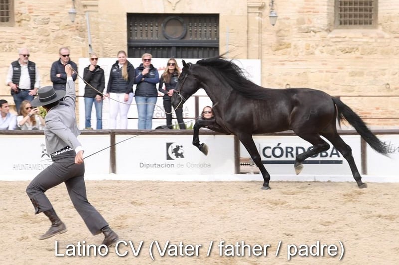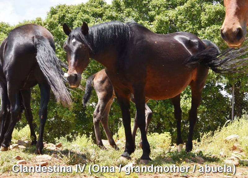 lieber Charakter, neugierig, menschenbezogen, roh, steht mit ihrer Mutter und anderen Stuten und Fohlen draußen, groß, gute Bewegungen und Abstammung, Abstammung: Nicolas Romero, Valdeolivas, hat mehrere qualifizierte Vorfahren www.elegante-andalusier.com