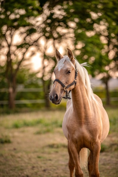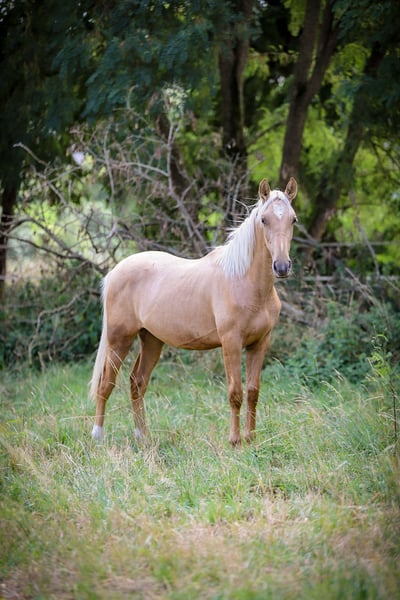 Available, Olaya, born on May 30, 2025 A stunning purebred Spanish Palomino filly, just one year old. Very friendly and affectionate towards people, Olaya enjoys being handled. She already shows a confident personality, with a lovely temperament—gentle and respectful. Physically built for sport, she is very feminine, with an expressive head and already elegant gaits. She currently measures approximately 1.43 meters at the withers. In terms of handling, Olaya is accustomed to wearing a halter, leading on a longe line, and is familiar with the farrier. She also knows the horse trailer. She will of course leave with all her vaccinations, deworming, and hoof care up to date. Visible in Sarthe, France. Please feel free to contact us for more information.