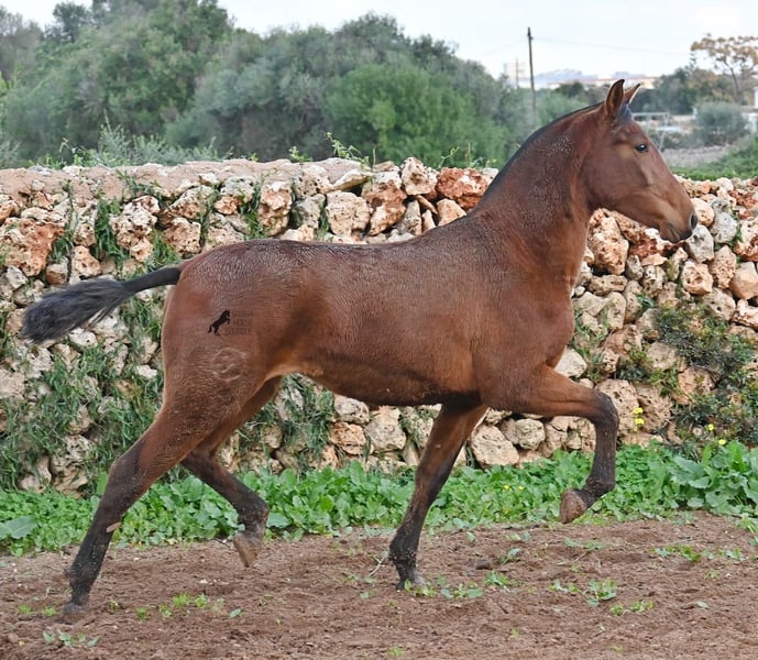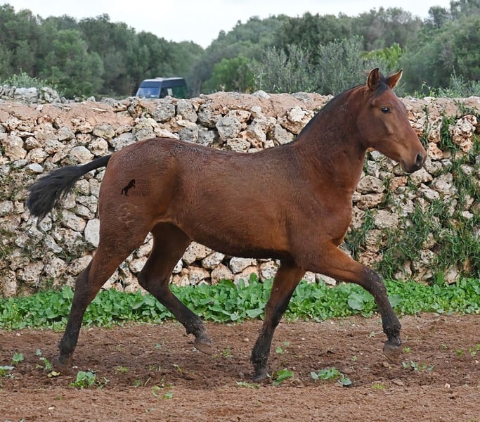 Diese 2024 geborene PRE Stute (Andalusier mit Rassenachweis der Ancce), ist jetzt schon eine atemberaubende Stute! Trotz rutschigem Untergrund, zeigt sie ganz stolz, wie viel Bewegung in ihr steckt und wie geschmeidig und flexibel sie ist. Ihr Vater ist mehrfach prämiert, sowohl für die gute Bewegung, als auch morfologisch (Zuchtschau) und ohne Zweifel hat er dieses Talent bestens vererbt. Sie wächst in der Herdenhaltung 24/7 auf, was sie sehr robust macht und sie ist bestens sozialisiert. Dank der Regensaison auf Menorca, auch etwas von Matsch paniert ;) In ihrer Abstammung finden wir den Mejorante Hengst Barquito von Guardiola, sowie den Mejorante Hengst Hebreo XIX von Escalera. Sie hat eine klassische Mischung von Guardiola und Escalera in ihren Blutlinien, was für das klassich barocke Exterieur und den feinen, menschenfreundlichen Charakter sorgt. Ihr zu erwartendes Endmaß liegt um die 160cm und dank ihrer Flexibilität und Wendigkeit, wird sie nicht nur für die Dressur, sondern auch für die Working Equitation sehr interessant werden. Solltest du sie erst später holen wollen, so kann gerne ein Aufzuchtsplatz für sie organisiert werden. Videos und Abstammung gerne auf Anfrage. Ihr Standort ist Menorca. Gerne organisiere ich vor Ort eine Fohlen-AKU,Transport oder auch ihre Reise, solltest du persönlich zum Anschauen kommen. Details dazu gerne auf meiner Seite oder im Gespräch. Saludos aus Spanien